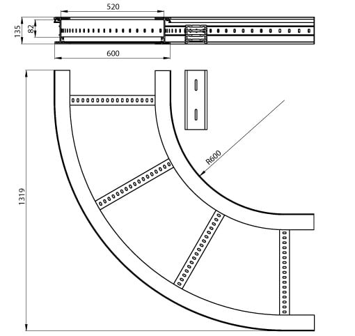 Gamme complète de composants pour réaliser les cheminements les plus complexes avec des rayons de courbure de 300 ou 600 mm.