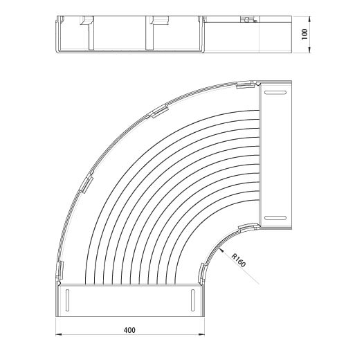 Unex - Coude plat 90° gris RAL7035 100X400 U23X - 66430