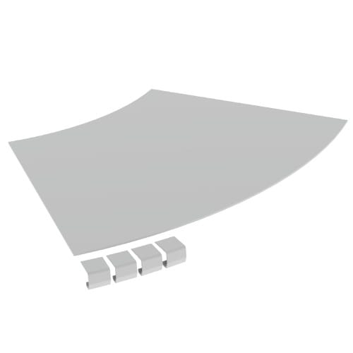 Couvercle coude plat 45° L500 R600 gris RAL7035 U23X. Pour couvrir le coude à 90° de même largeur et de même rayon de courbure. Livré avec Clips pour couvercle réf. 67845-48.