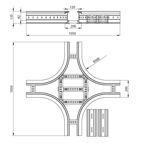 Gamme complète de composants pour réaliser les cheminements les plus complexes avec des rayons de courbure de 300 ou 600 mm.