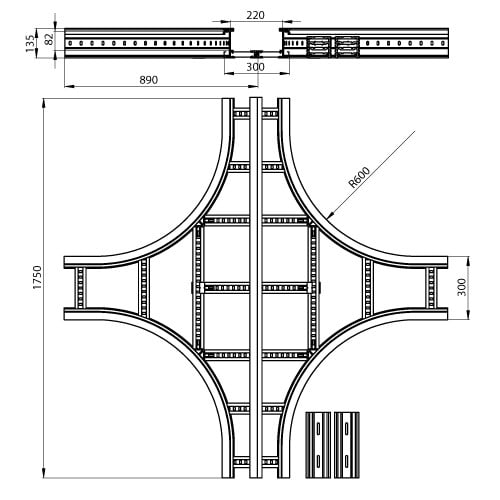 Gamme complète de composants pour réaliser les cheminements les plus complexes avec des rayons de courbure de 300 ou 600 mm.
