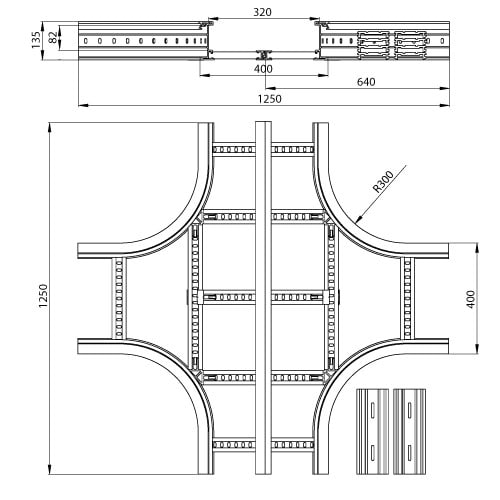 Gamme complète de composants pour réaliser les cheminements les plus complexes avec des rayons de courbure de 300 ou 600 mm.