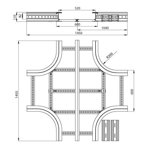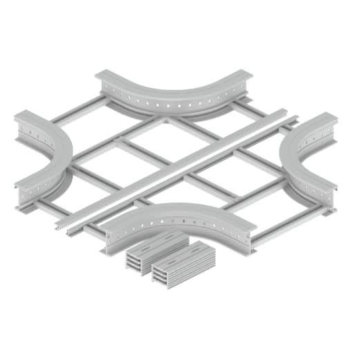 Gamme complète de composants pour réaliser les cheminements les plus complexes avec des rayons de courbure de 300 ou 600 mm.