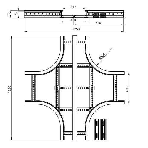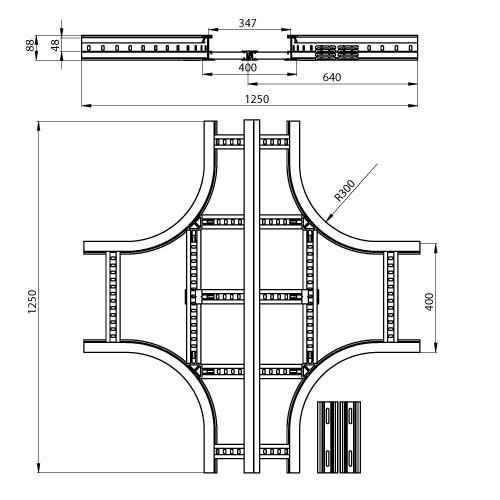 Gamme complète de composants pour réaliser les cheminements les plus complexes avec des rayons de courbure de 300 ou 600 mm.