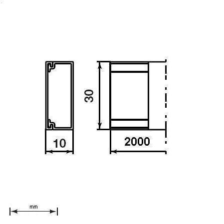 Moulure sans cloison blanc RAL9010 10x30 U23X. Pour la distribution des fils ou câbles d'énergie et de télécommunications et l’adaptation d’appareillages.