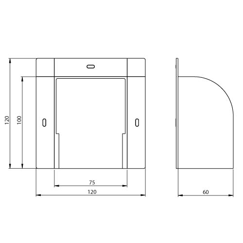 Passage de mur 90° blanc RAL9010 60X75 U24X. Elément de finition pour garantir le recouvrement du perçage du mur et de l'extrémité de la goulotte Gamme 31 en traversée de mur à 90°. Fixation par pression. Montage par vis optionnel.