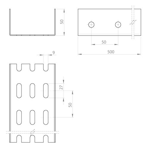 Unex - Profil U prépercé gris RAL7035 0,50 m Acier Epoxy - 66938