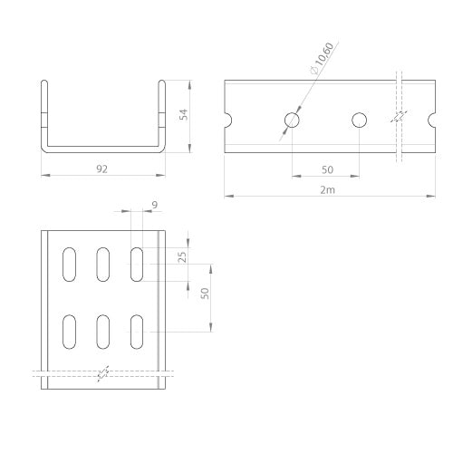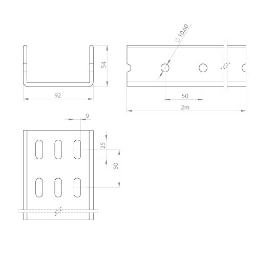Unex - Profil U prépercé isolant gris RAL7035 2 m U23X - 66806