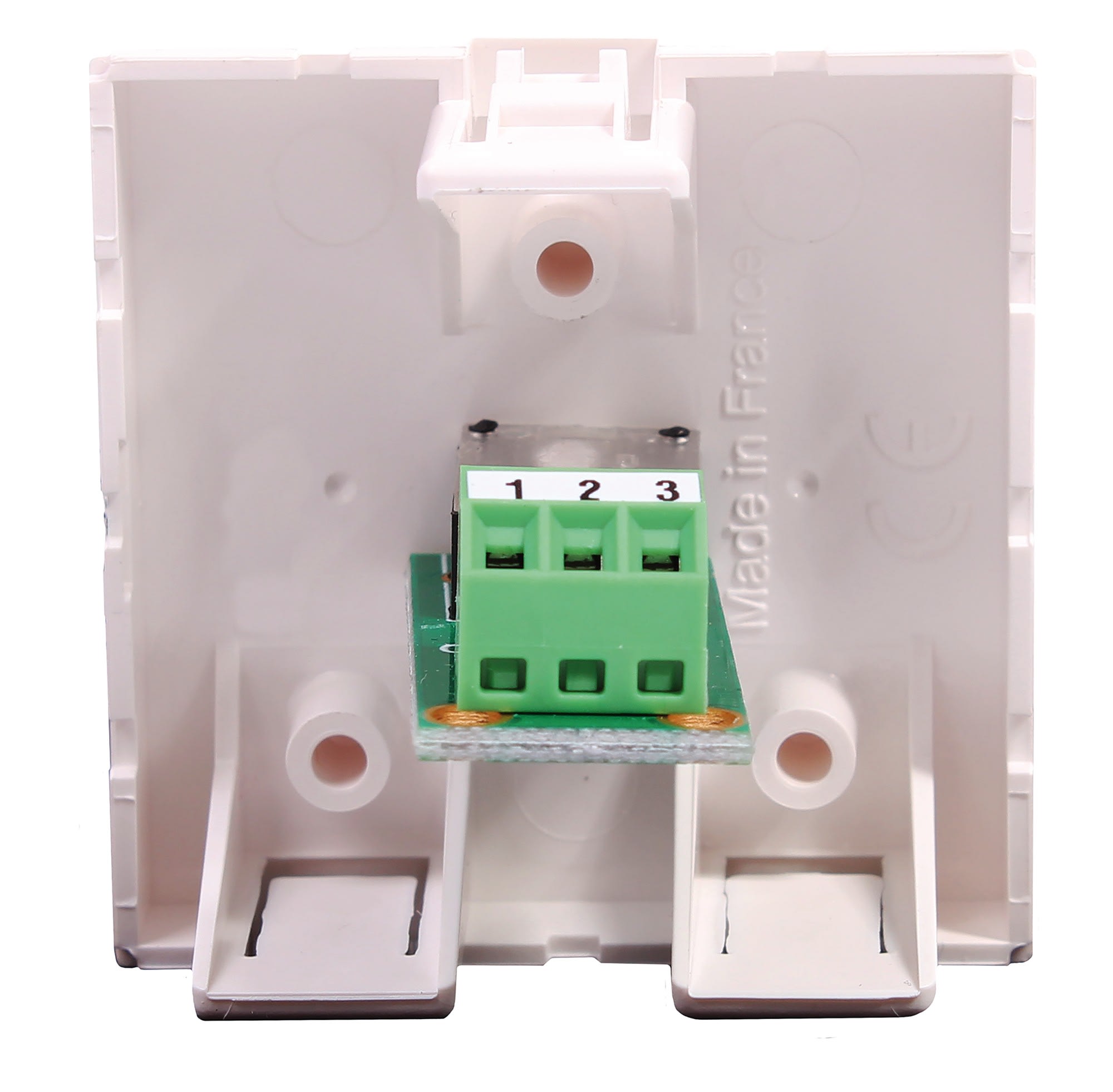 Ce plastron Jack 3.5mm 45x45 femelle vous permet d’améliorer votre installation en rangeant vos prises dans des colonnes, goulottes, etc. La connexion Jack vous permettra par exemple de diffuser l'audio de votre smartphone sur des enceintes.Grâce à cet accessoire encastrable, profitez de la commodité du port Jack directement intégré dans le mur. Le bornier arrière permet de connecter les fils de votre câble Jack intégré dans la goulotte.