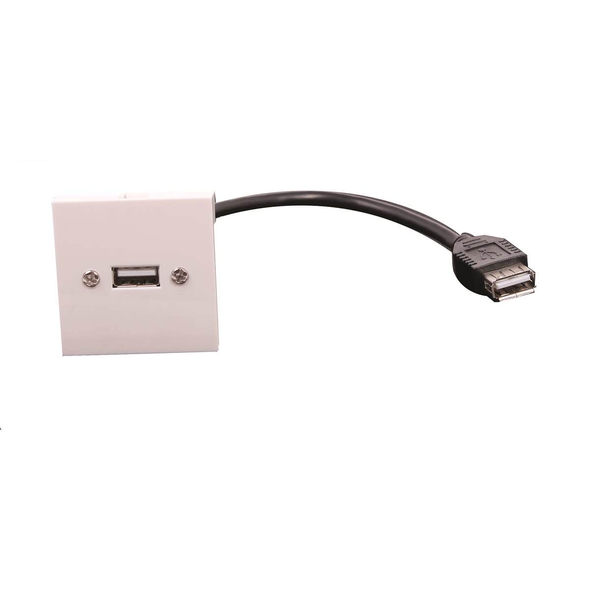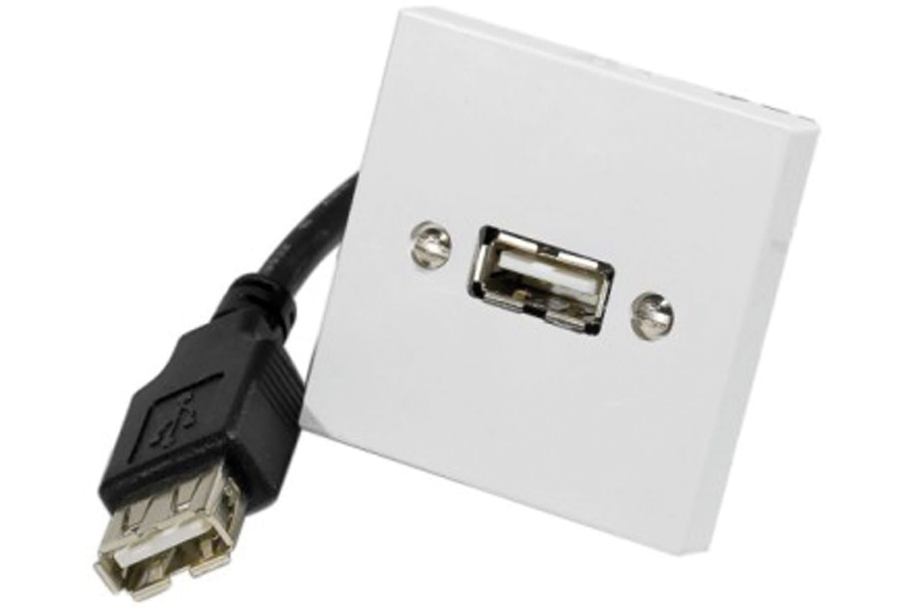 La technologie USB vous permet de transmettre les données. Compatible au format 45x45mm, ce plastron peut être installé dans des goulottes de bureau ou des boîtiers en saillie. Le plastron est équipé d'une rallonge pour brancher votre équipement.
