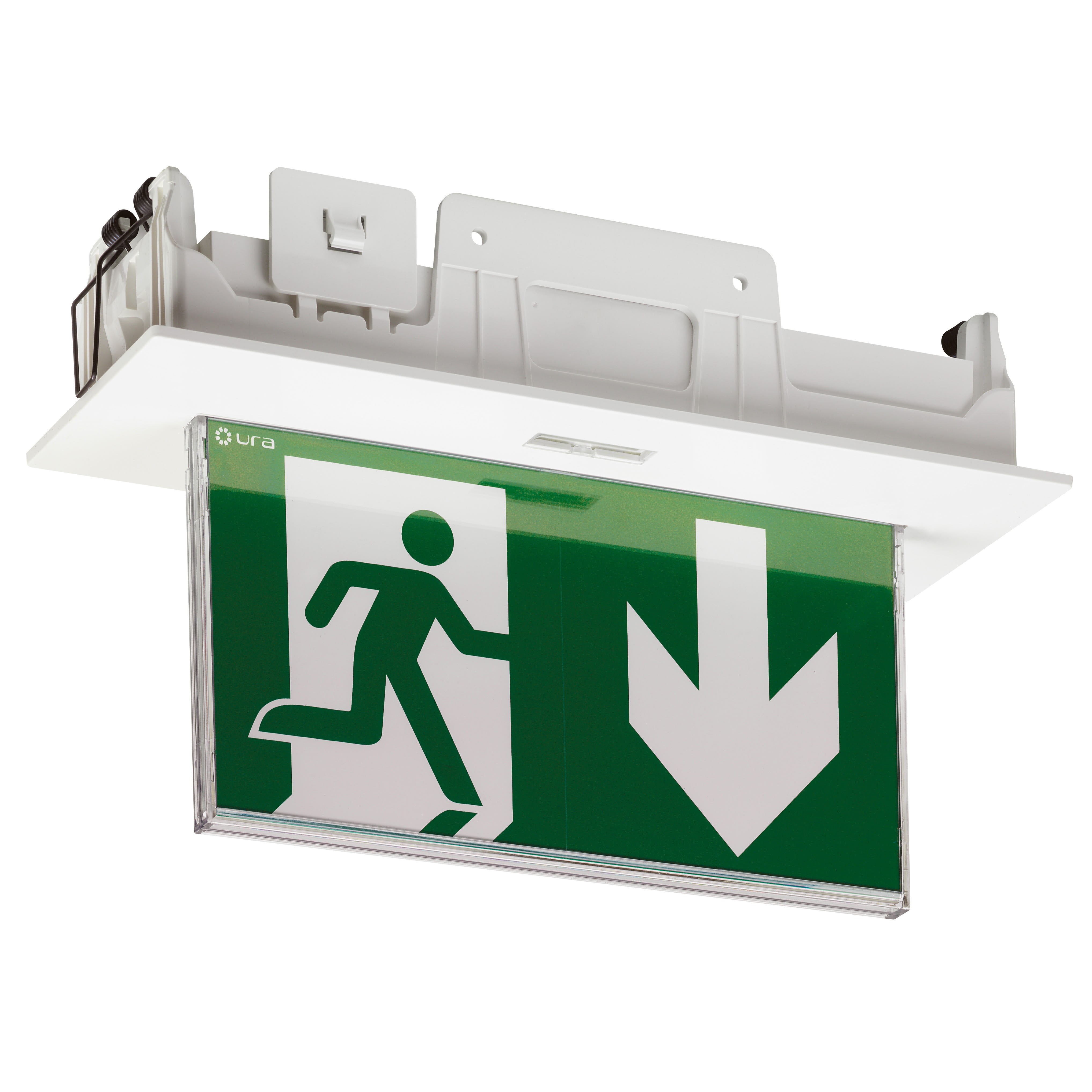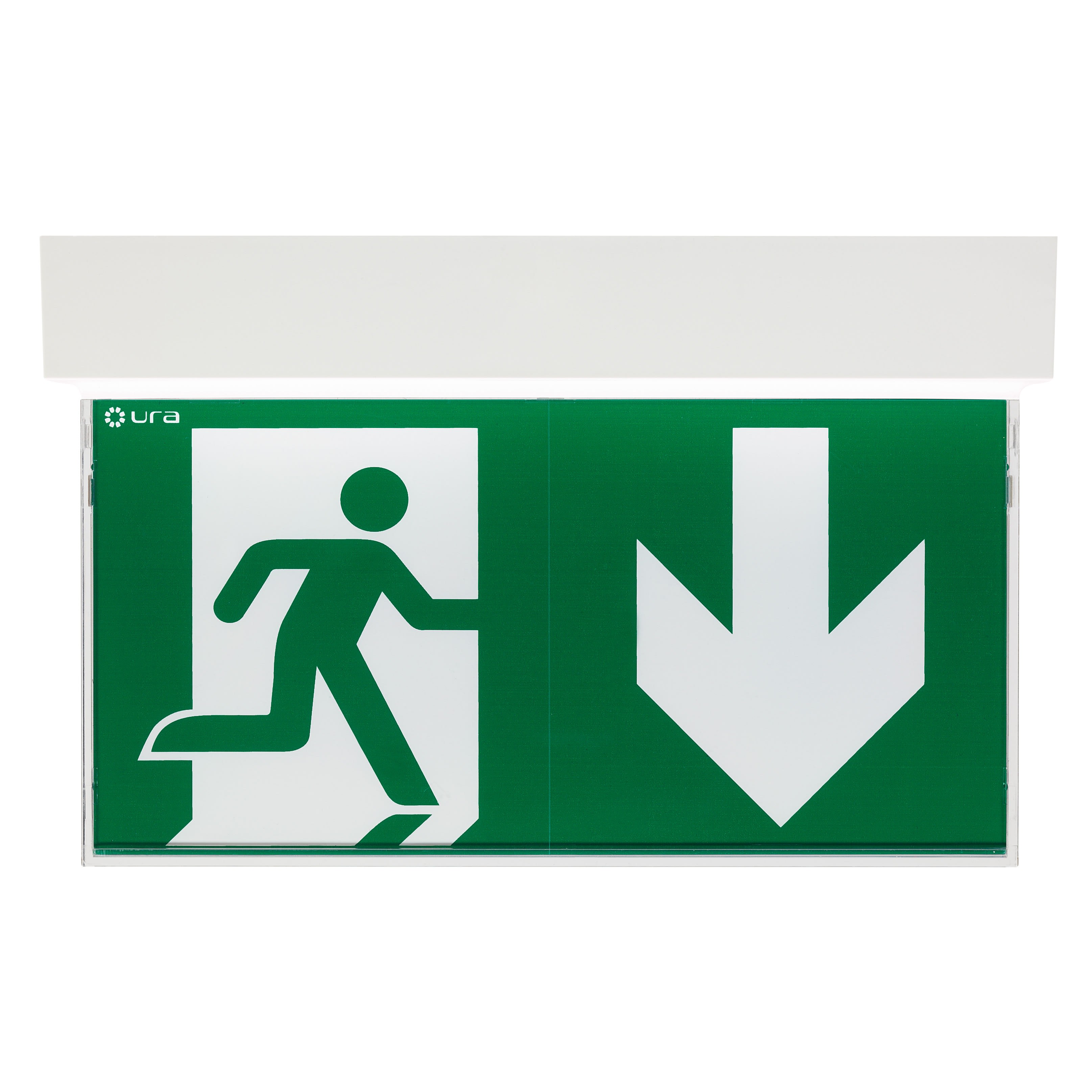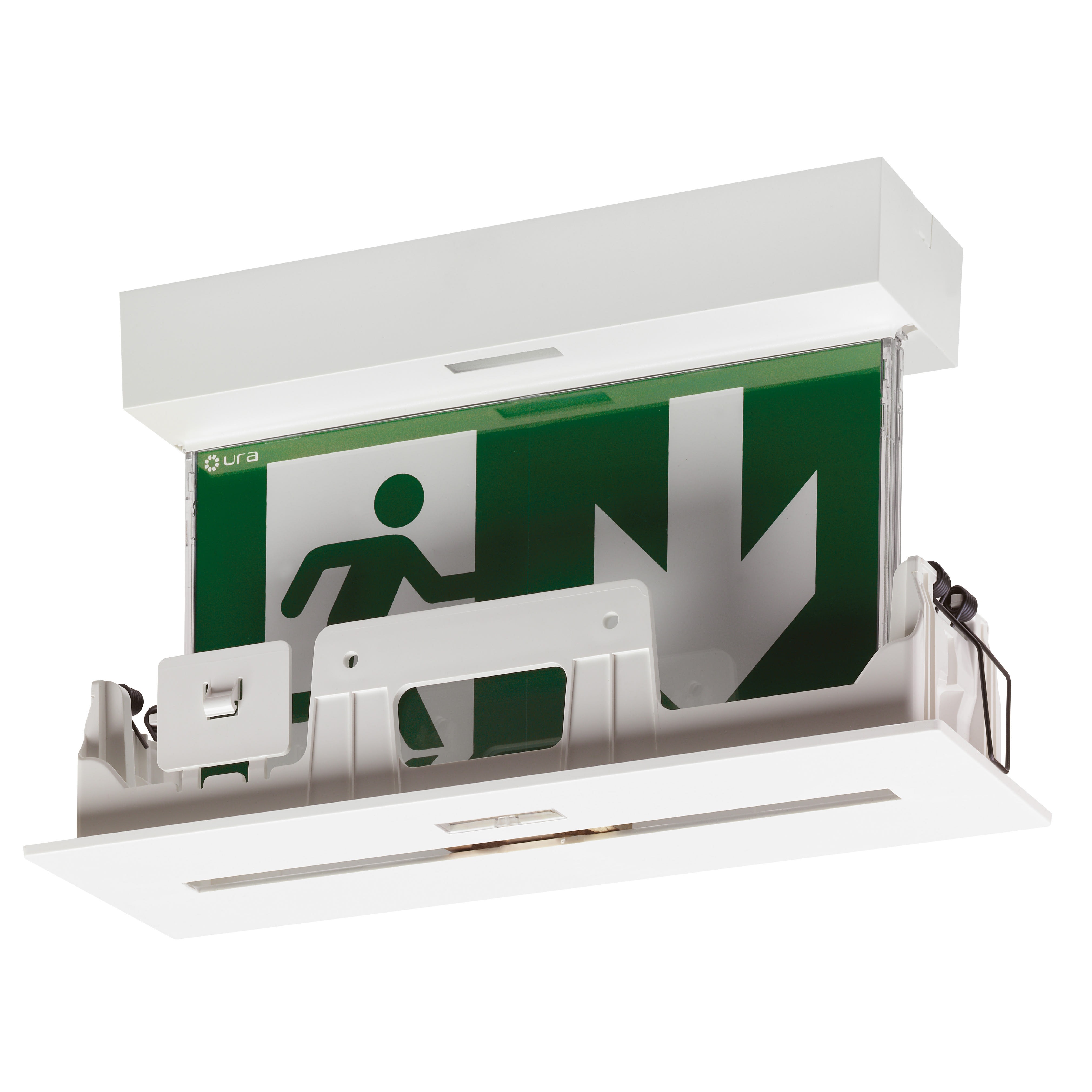 BAES+BAEH Uralife V SATI Connecté - 45lm/1h + 8lm/5h -IP43/IK07 - pose plafond encastrée/saillie - éclairage uniforme du pictogramme -NF Environnement - fonctions visibilité+ et balisage lumineux d'évacuation - pictogramme repositionnable