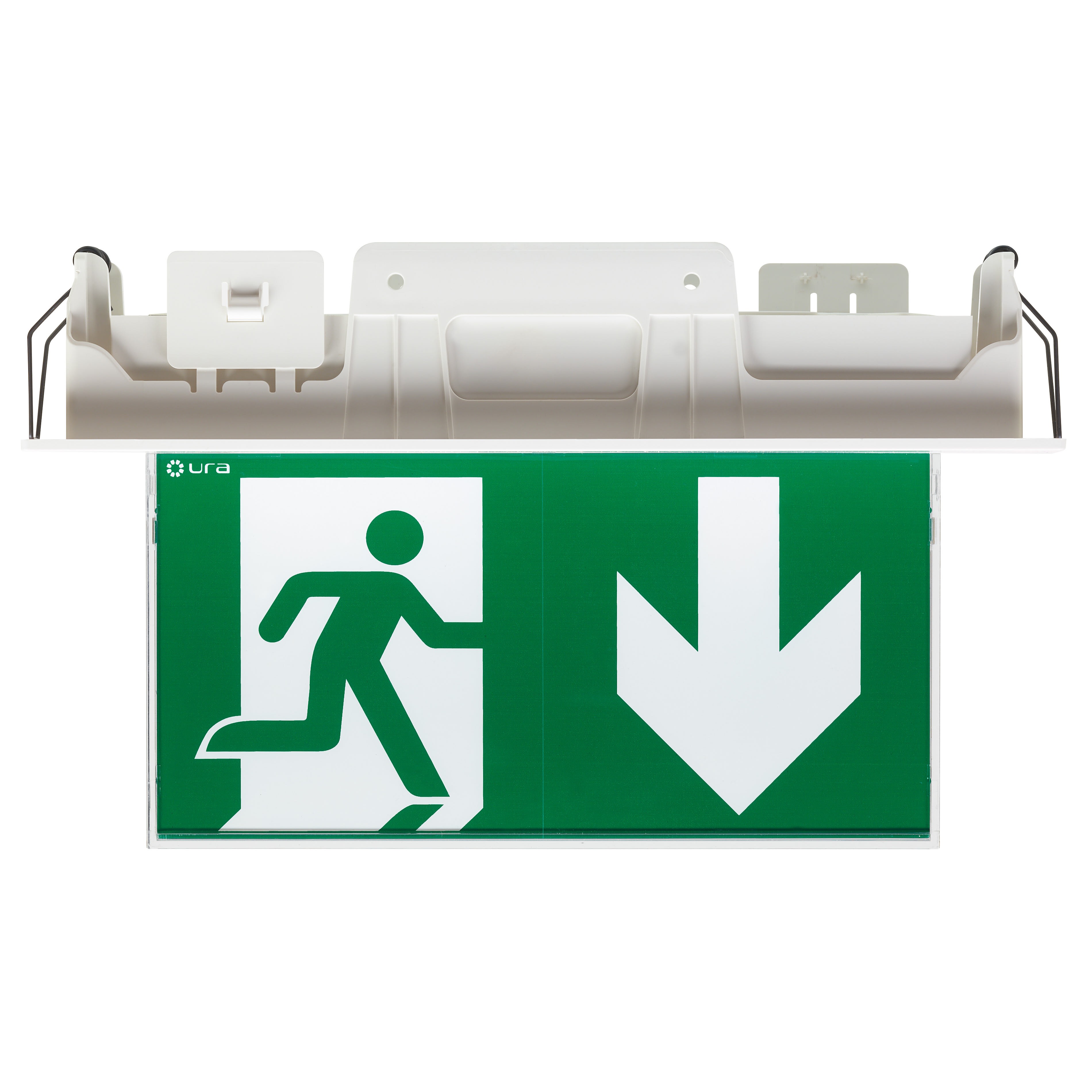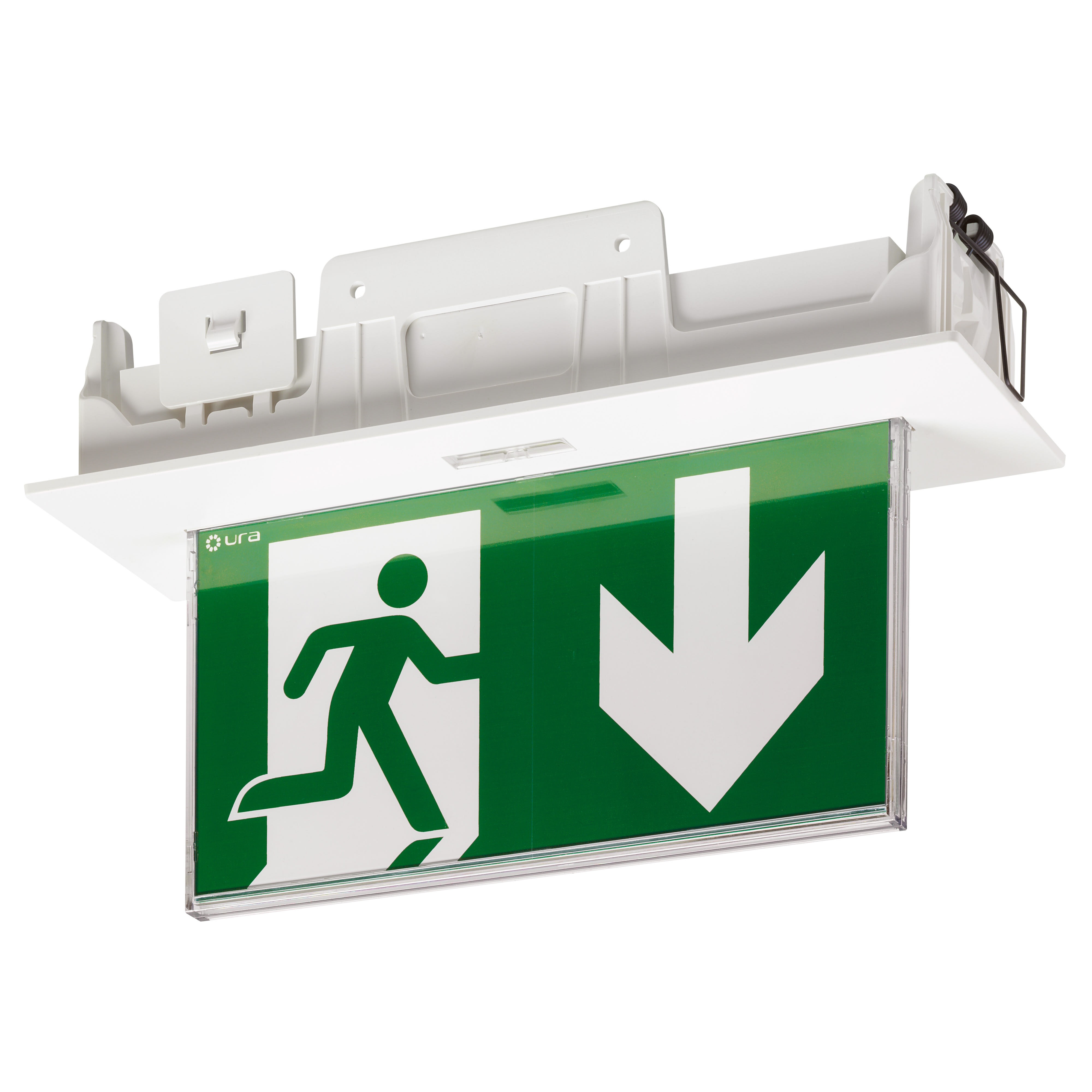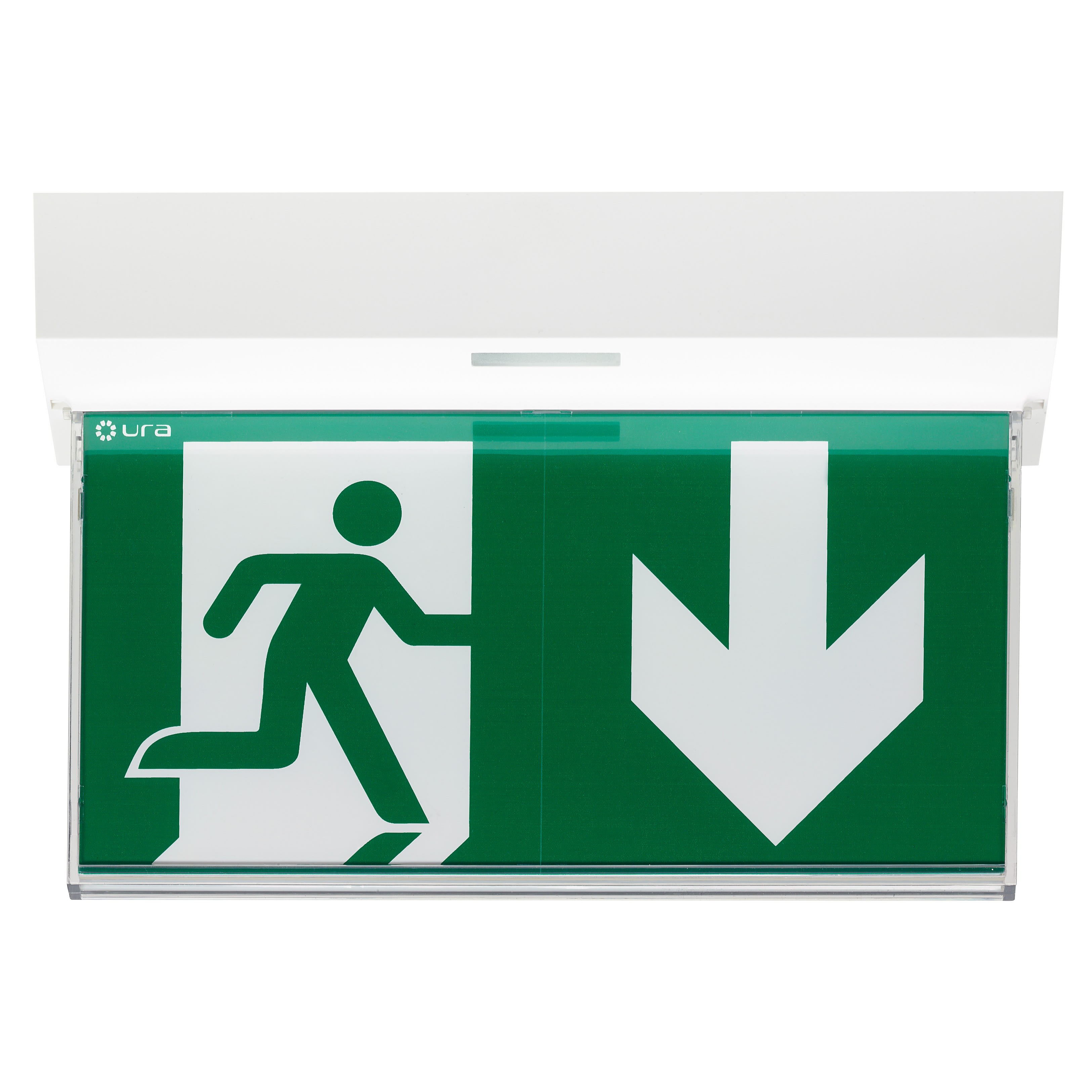 BAES+BAEH Uralife V SATI Connecté - 45lm/1h + 8lm/5h -IP43/IK07 - pose plafond encastrée/saillie - éclairage uniforme du pictogramme -NF Environnement - fonctions visibilité+ et balisage lumineux d'évacuation - pictogramme repositionnable