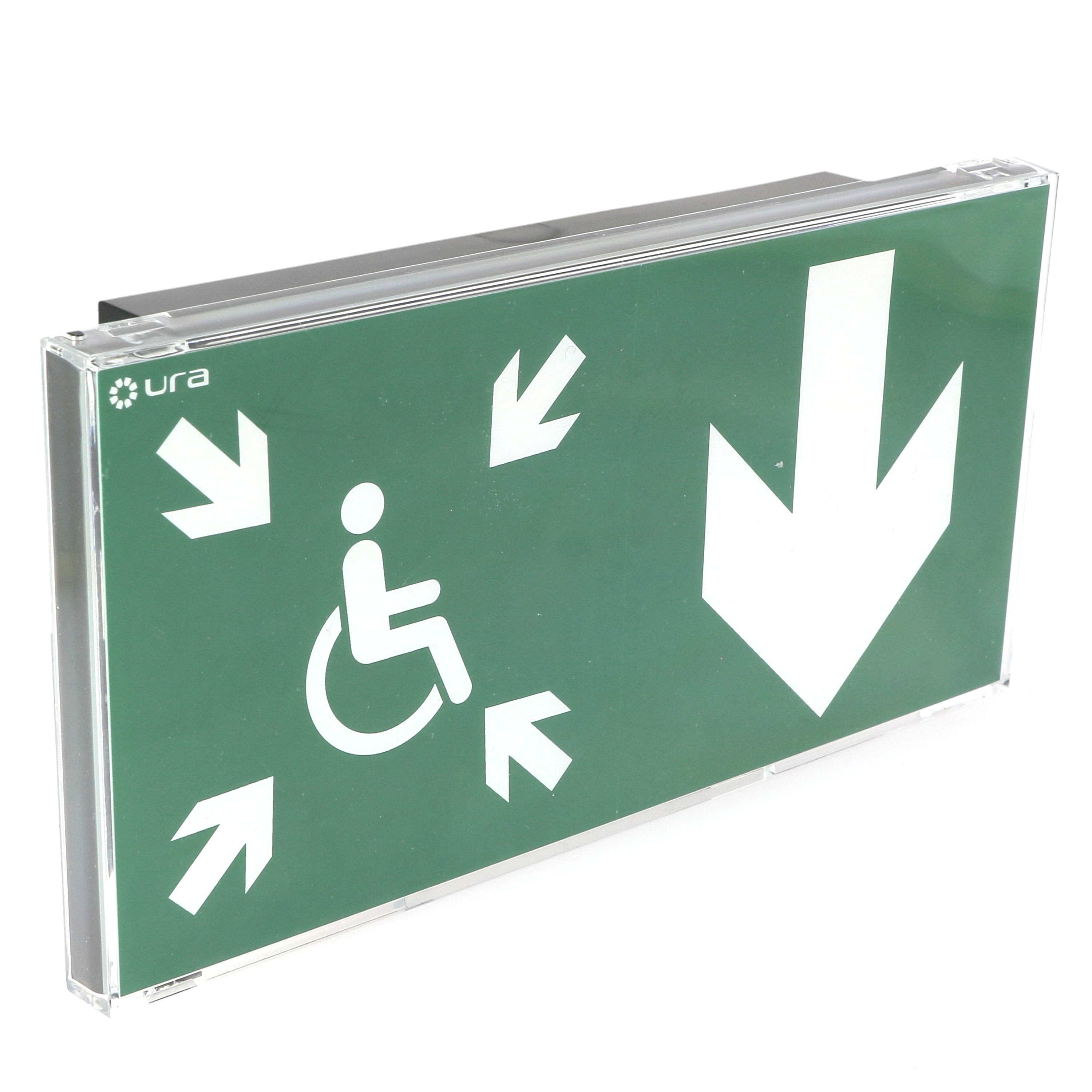 BAES+DBR d'évacuation SATI Adressable à faible consommation (0,9W) pour signalisation de la direction vers un Espace d'Attente Sécurisé à destination des PMR BAES+DBR directement installable en saillie murale avec reprise possible des entraxes de fixation et des entrées de câbles du BAES Uralife de la génération précédente BAES+DBR SATI Adressable configurable avec la passerelle de configuration réf. 140132 et la centrale URAVISION réf. 140110, permettant de centraliser son état de fonctionnement, de le localiser en cas de défaut et d'identifier la nature d'un éventuel défaut BAES+DBR certifié à la marque de qualité NF Environnement et équipé d'une batterie Lithium-Ion (LiFePO4) à haute densité d'énergie