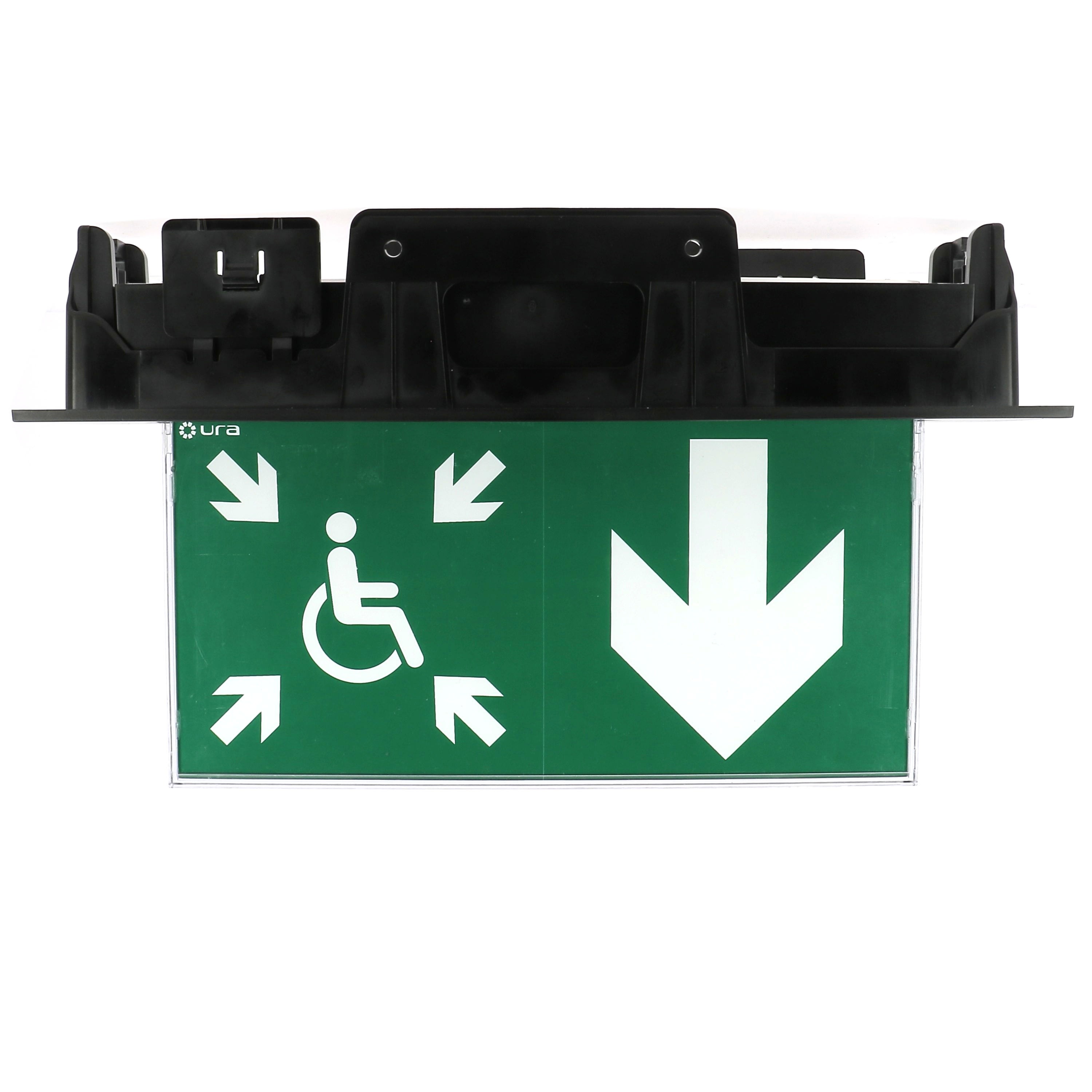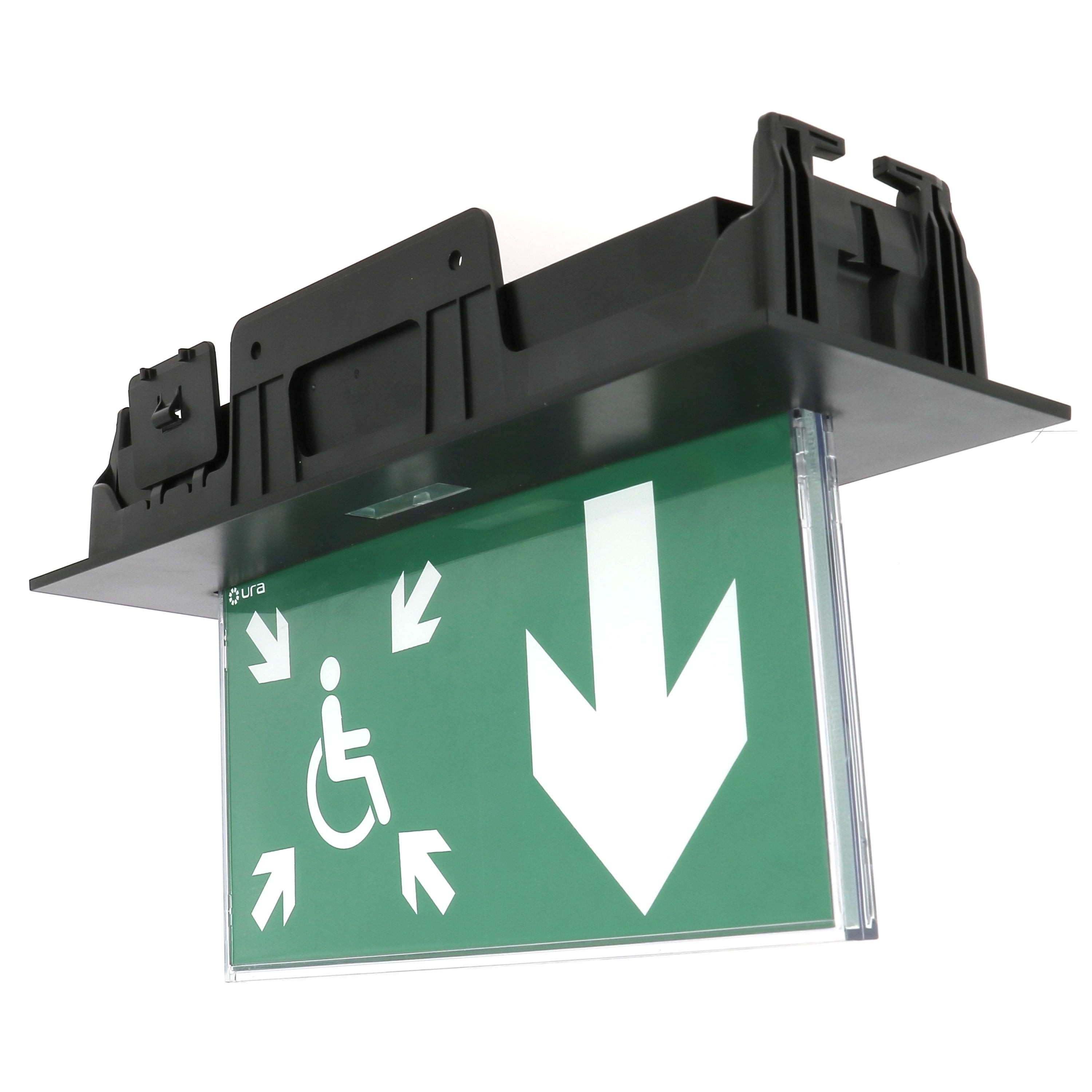 BAES+DBR d'évacuation SATI Adressable à faible consommation (0,9W) pour signalisation de la direction vers un Espace d'Attente Sécurisé à destination des PMR BAES+DBR directement encastrable au plafond ou installable en saillie BAES+DBR SATI Adressable configurable avec la passerelle de configuration réf. 140132 et la centrale URAVISION réf. 140110, permettant de centraliser son état de fonctionnement, de le localiser en cas de défaut et d'identifier la nature d'un éventuel défaut BAES+DBR certifié à la marque de qualité NF Environnement et équipé d'une batterie Lithium-Ion (LiFePO4) à haute densité d'énergie Possibilité d'installation murale perpendiculairement au plan du mur, en position horizontale ou verticale avec équerre murale en accessoire réf. 168114V