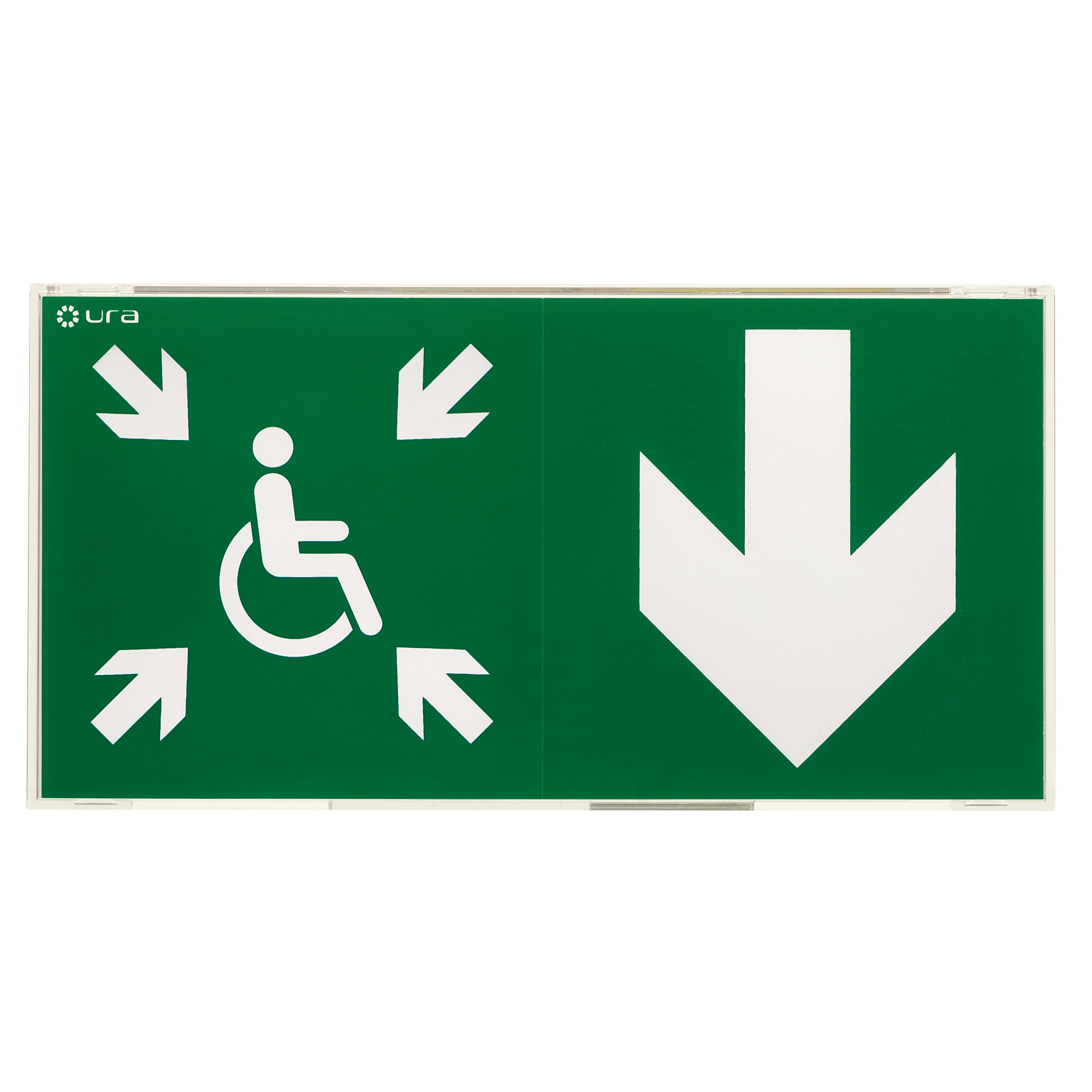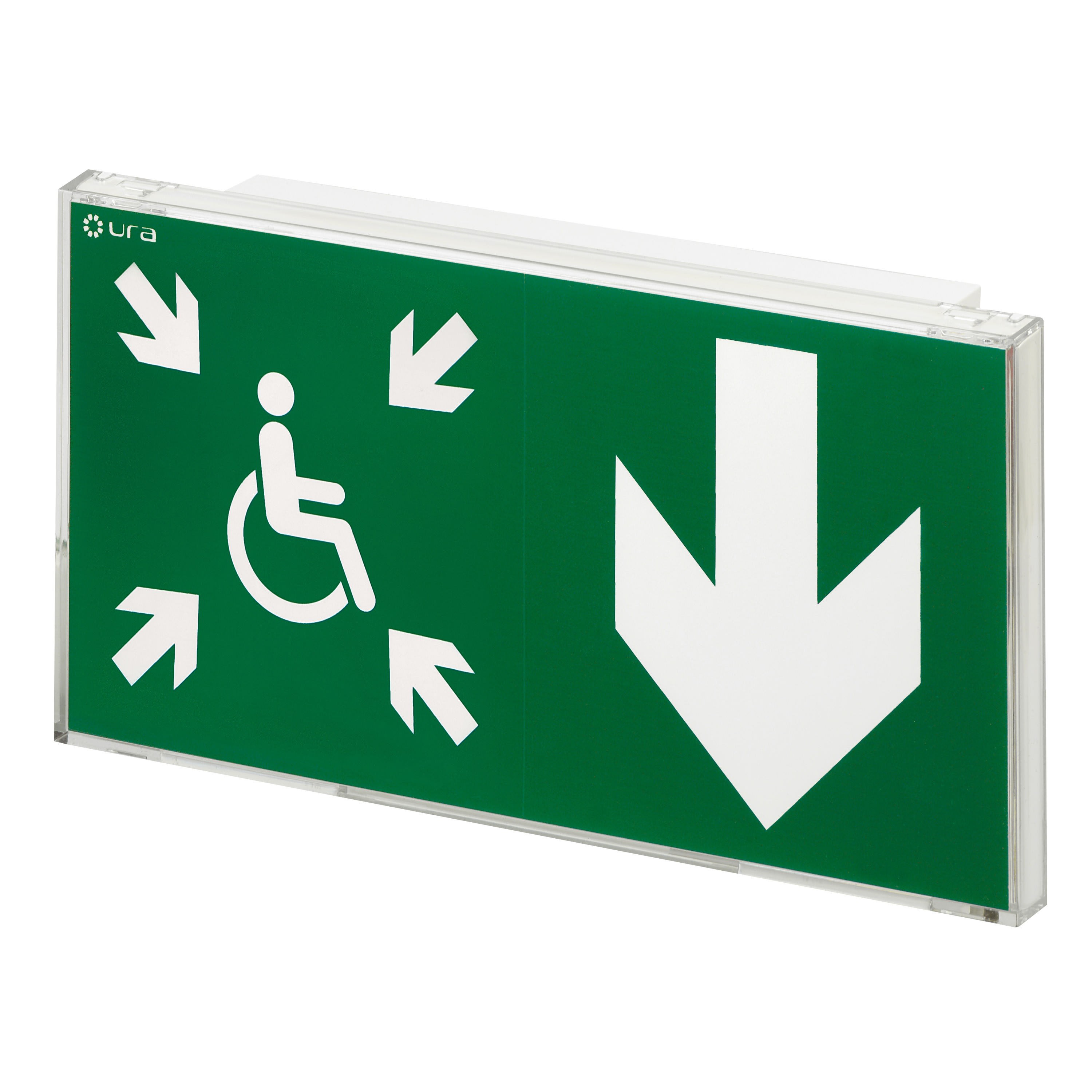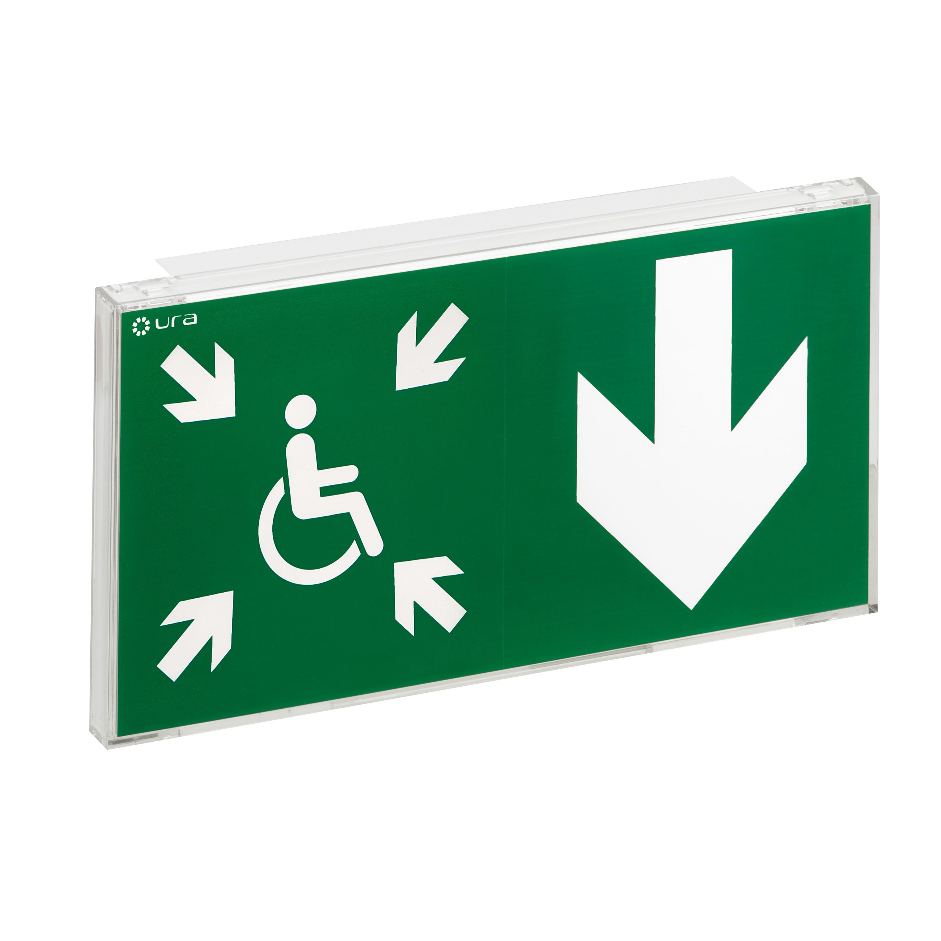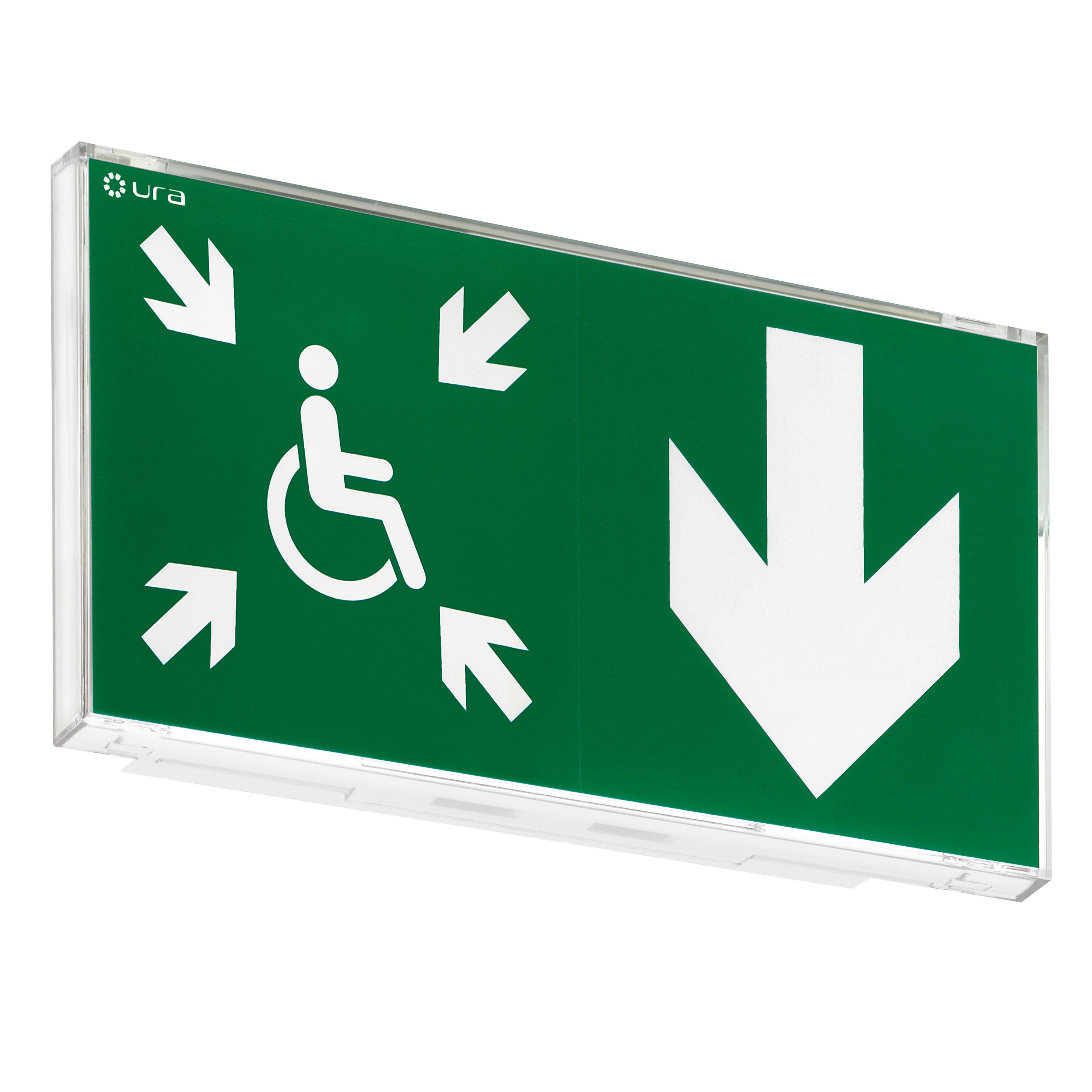 BAES+DBR d'évacuation SATI Adressable à faible consommation (0,9W) pour signalisation de la direction vers un Espace d'Attente Sécurisé à destination des PMR BAES+DBR directement installable en saillie murale avec reprise possible des entraxes de fixation et des entrées de câbles du BAES Uralife de la génération précédente BAES+DBR SATI Adressable configurable avec la passerelle de configuration réf. 140132 et la centrale URAVISION réf. 140110, permettant de centraliser son état de fonctionnement, de le localiser en cas de défaut et d'identifier la nature d'un éventuel défaut BAES+DBR certifié à la marque de qualité NF Environnement et équipé d'une batterie Lithium-Ion (LiFePO4) à haute densité d'énergie