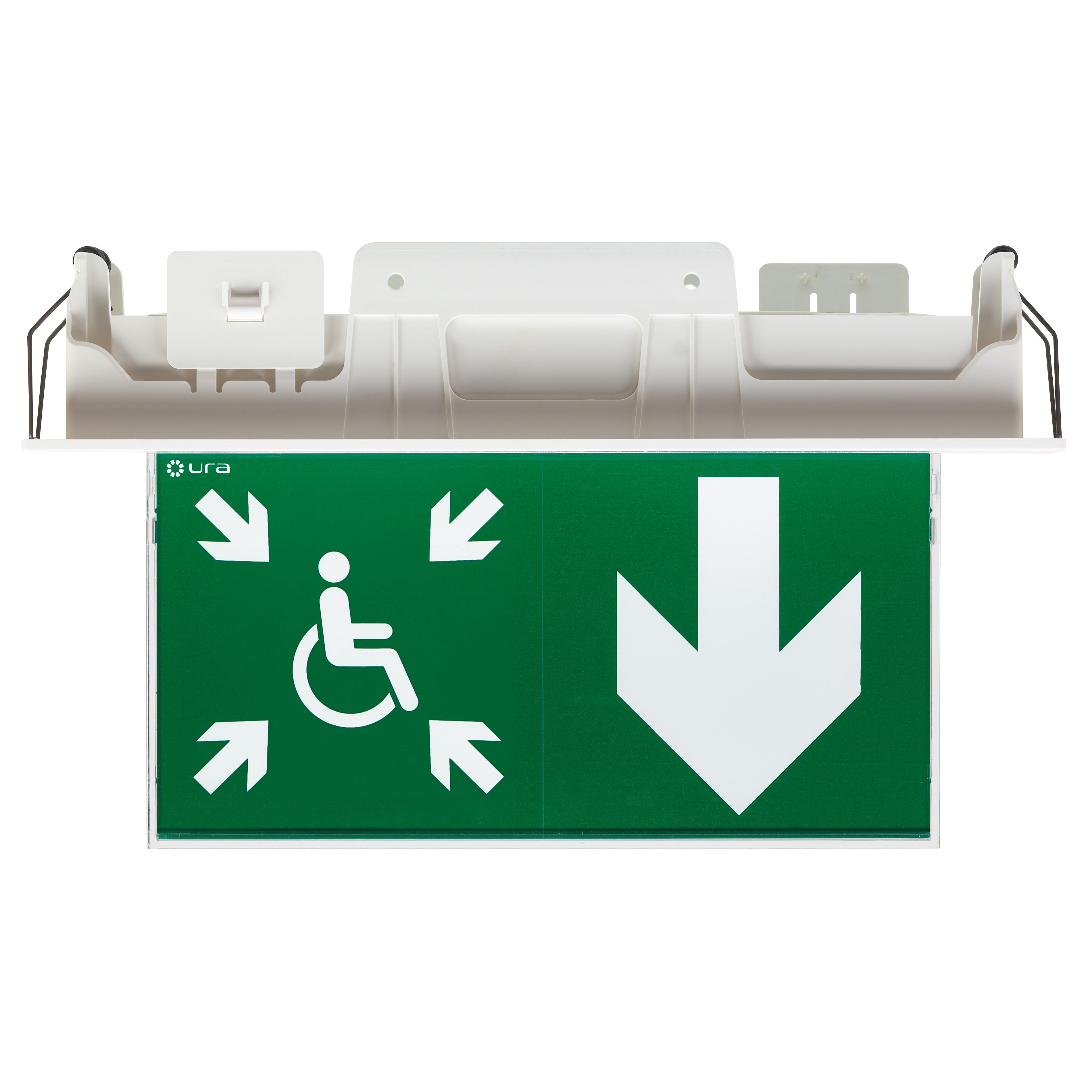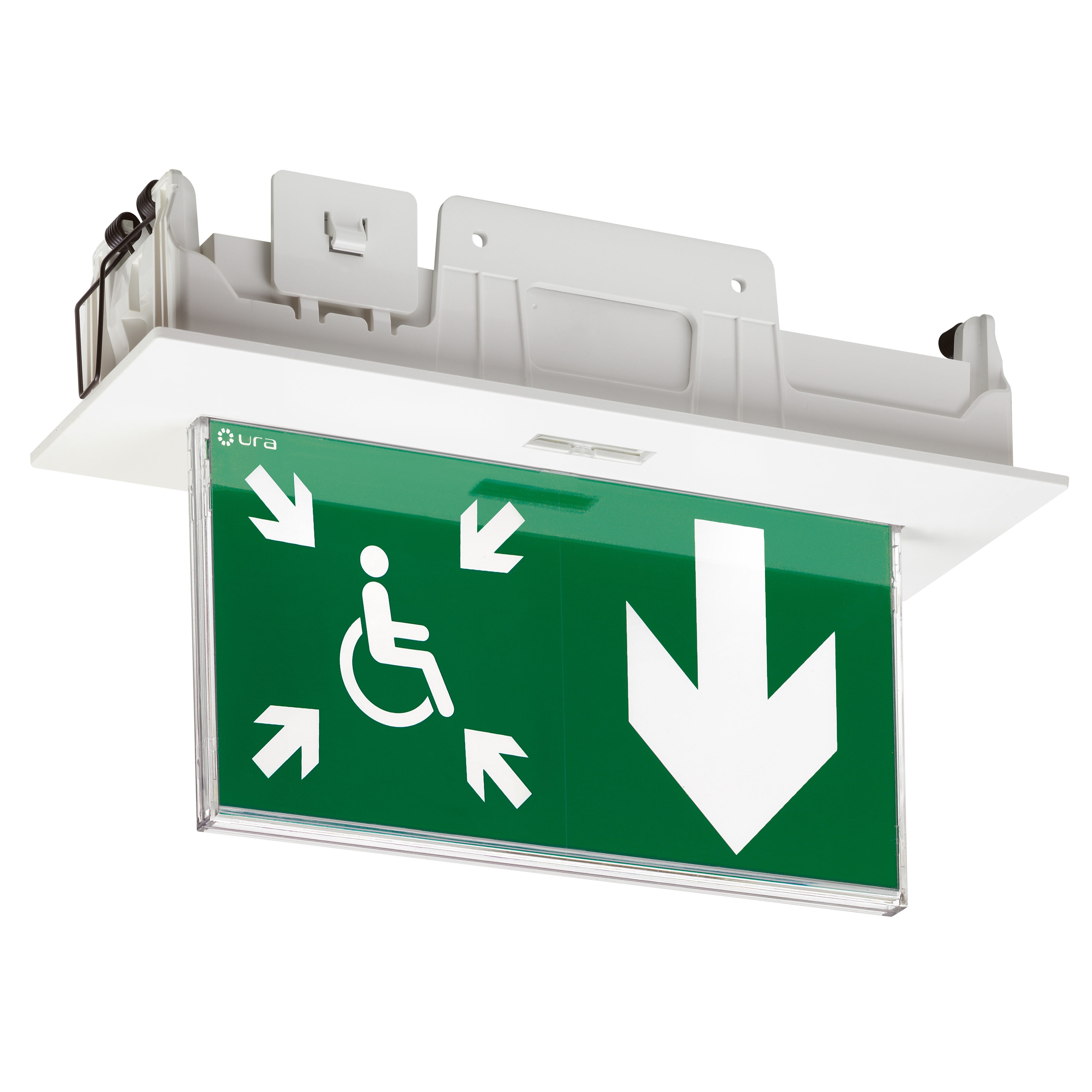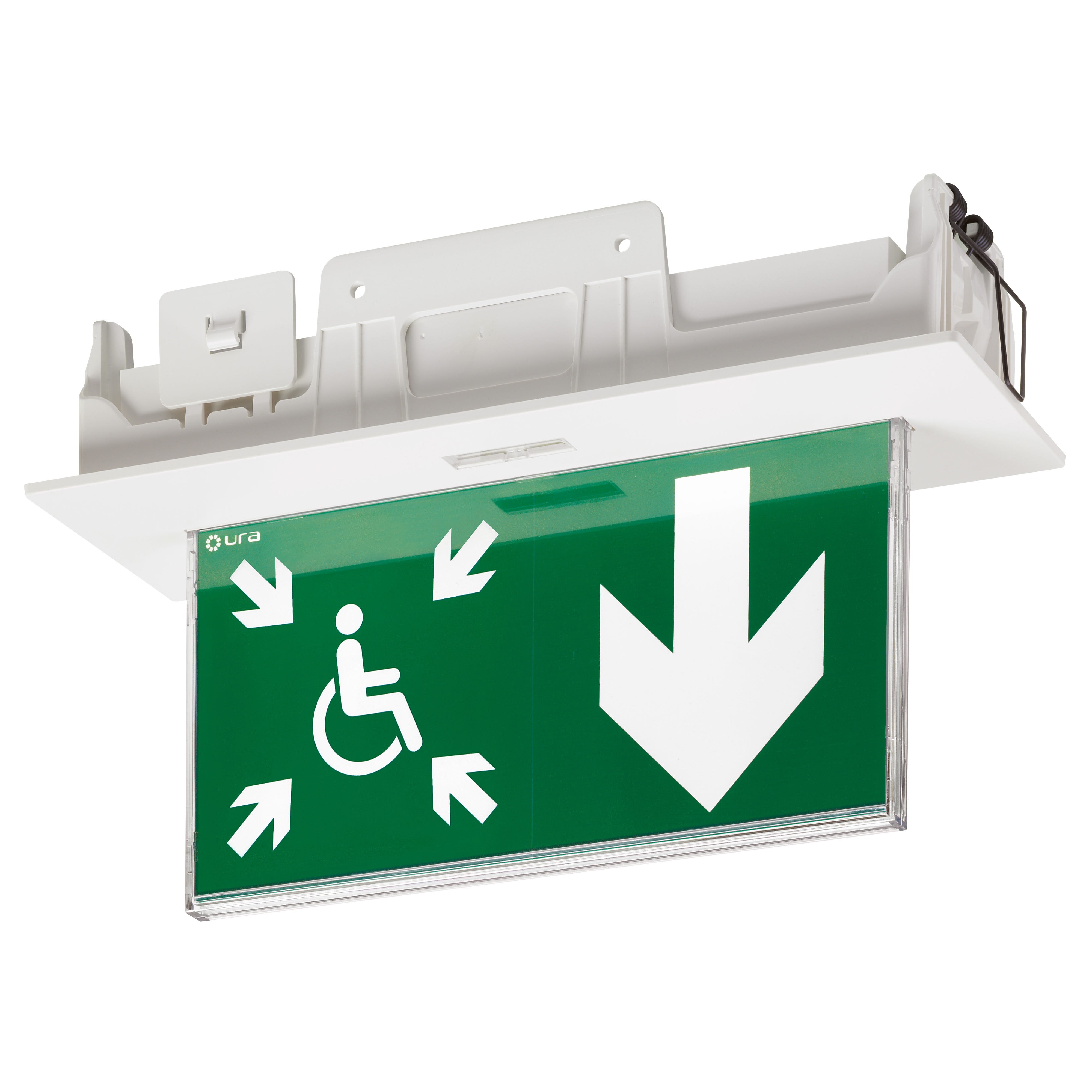 BAES+DBR d'évacuation SATI Adressable à faible consommation (0,9W) pour signalisation de la direction vers un Espace d'Attente Sécurisé à destination des PMR BAES+DBR directement encastrable au plafond ou installable en saillie BAES+DBR SATI Adressable configurable avec la passerelle de configuration réf. 140132 et la centrale URAVISION réf. 140110, permettant de centraliser son état de fonctionnement, de le localiser en cas de défaut et d'identifier la nature d'un éventuel défaut BAES+DBR certifié à la marque de qualité NF Environnement et équipé d'une batterie Lithium-Ion (LiFePO4) à haute densité d'énergie Possibilité d'installation murale perpendiculairement au plan du mur, en position horizontale ou verticale avec équerre murale en accessoire réf. 168114V
