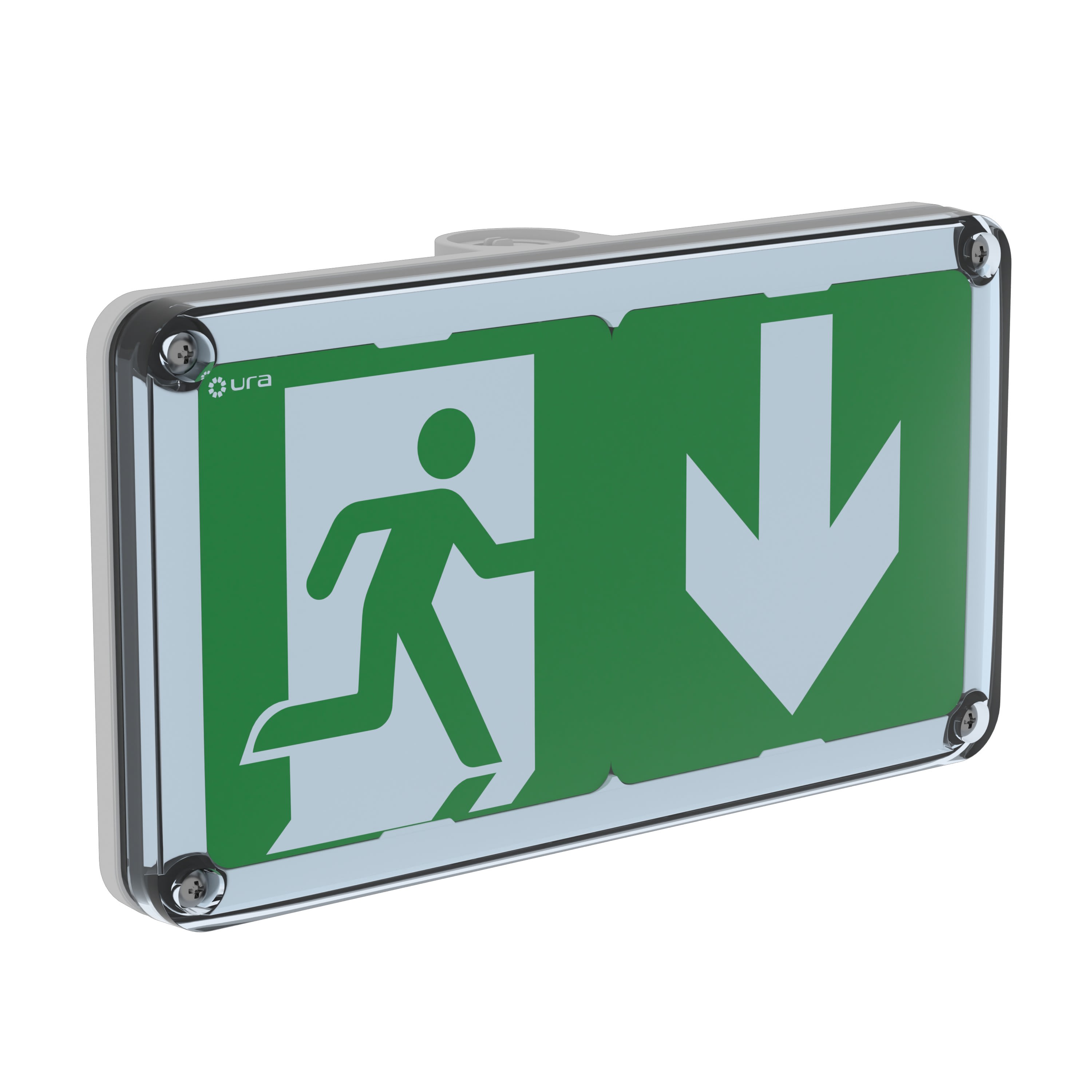 BAES Uraproof V Évacuation Adressable 45lm/1h - IP66/IK10 - fonctionnalité Visibilité + et signalisation verticale - installation plafond - livré avec un pictogramme repositionnable - NF Environnement