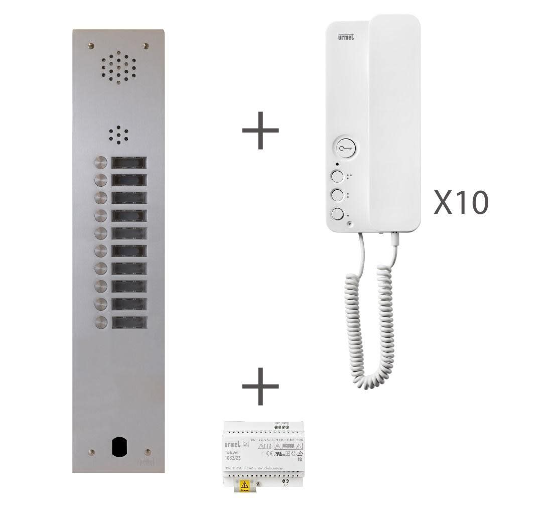 Urmet - Kit Audio Préprogrammé, 2Voice, Platine Et Postes, 1 Rangée, 10 Boutons - KA83/110