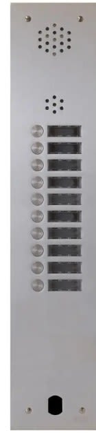 Kit audio 2Voice préprogrammé - 10 logements - 1 rangée. Poste d'appartement audio Miro 1183/4 Poste électronique pour installation bus 2 fils. Base en ABS blanc finition satinée pour fixation murale (chevilles et vis fournies). Points de fixation permettant un ajustement de la verticalité. Réglage et coupure de sonnerie, 3 niveaux. Signalisation de coupure. Plaque monobloc audio A83 façade en aluminium anodisé naturel 6 mm d’épaisseur. Prévoir bloc audio et extension 16 BP.