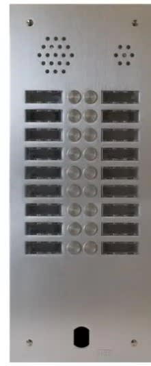 Kit audio 2Voice préprogrammé - 18 logements - 2 rangées. Poste d'appartement audio Miro 1183/4 Poste électronique pour installation bus 2 fils. Base en ABS blanc finition satinée pour fixation murale (chevilles et vis fournies). Points de fixation permettant un ajustement de la verticalité. Réglage et coupure de sonnerie, 3 niveaux. Signalisation de coupure. Plaque monobloc audio A83 façade en aluminium anodisé naturel 6 mm d’épaisseur. Prévoir bloc audio et extension 16 BP.