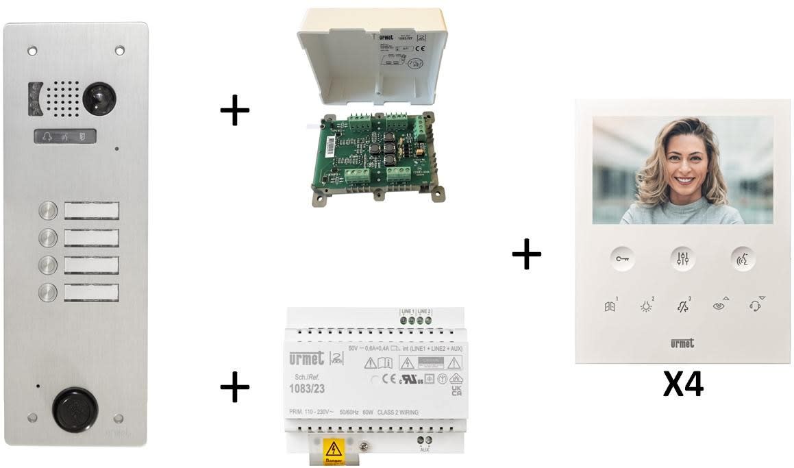 Urmet - Kit Vidéo Préprogrammé, 2Voice, Platine Et Moniteurs, 1 Rangée, 4 Boutons - KV83/104