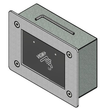 Lecteur encastré antivandale Vigik+ pour résidents et intervenants extérieurs (postaux, Enedis, Télécom, services d'urgence). Compatible avec badges MEMOPLUS, MEMOPROX et badges concurrents. Alimentation centrale.