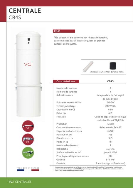 VCI - Centrale d'aspiration 2400W + double filtre - CB4S