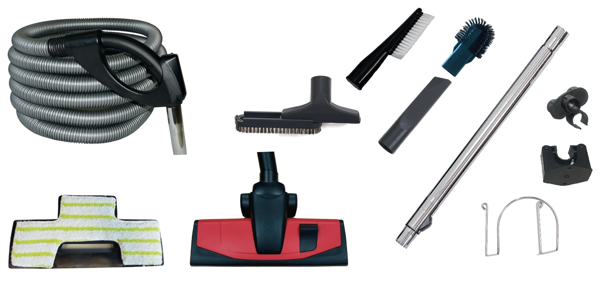 Ensemble d'accessoires Flexible à poignée marche/arrêt (Flexible 7,5m marche/arrêt, canne télescopique, jeu de brosses, supports accessoires)