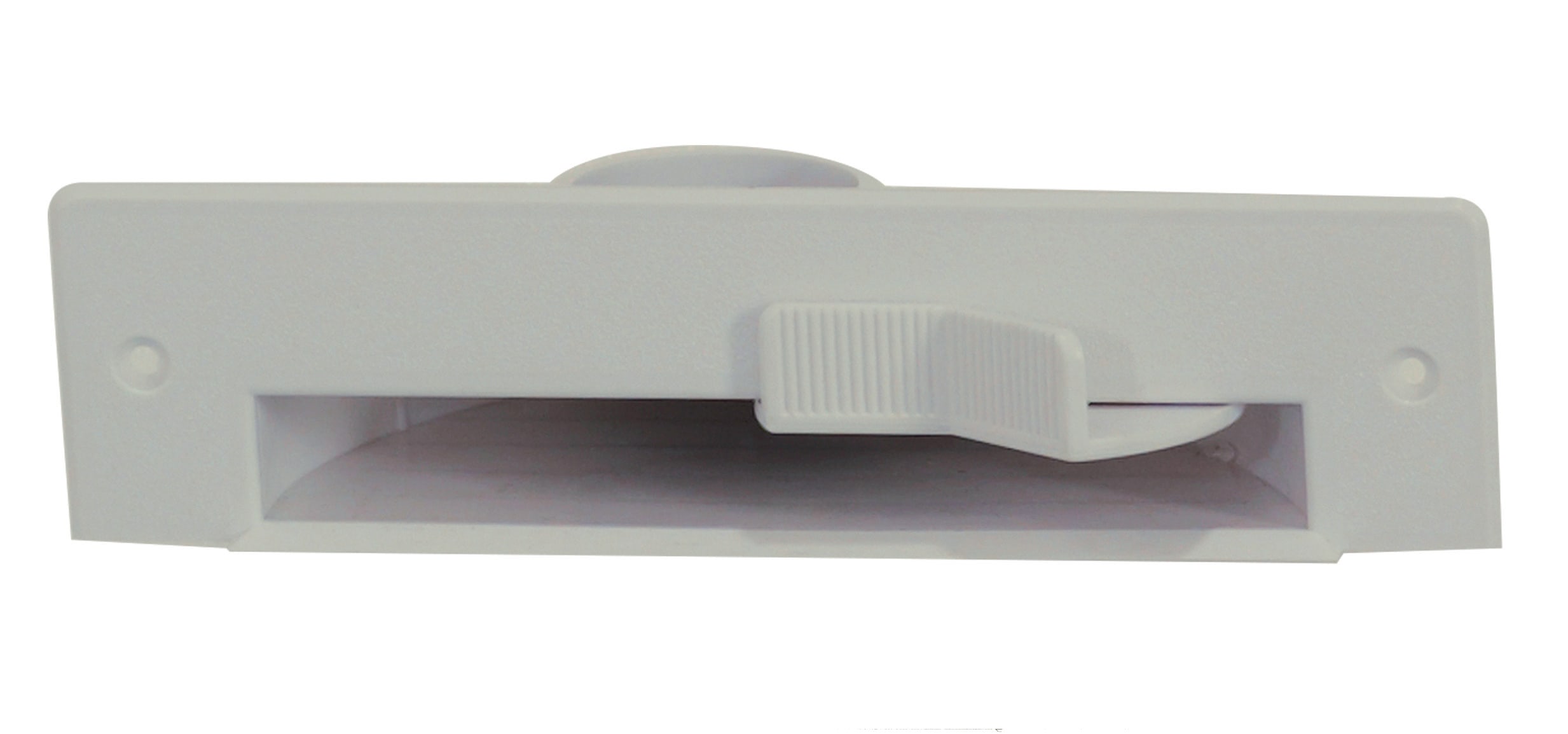 Trappe aspirante de cuisine blanche seule 21,7 X 5,5 cm. Intégrée dans la plinthe d'un meuble, vous balayez vers la trappe Pratique pour les miettes de la cuisine, par exemple, ou les cheveux de la salle de bain.