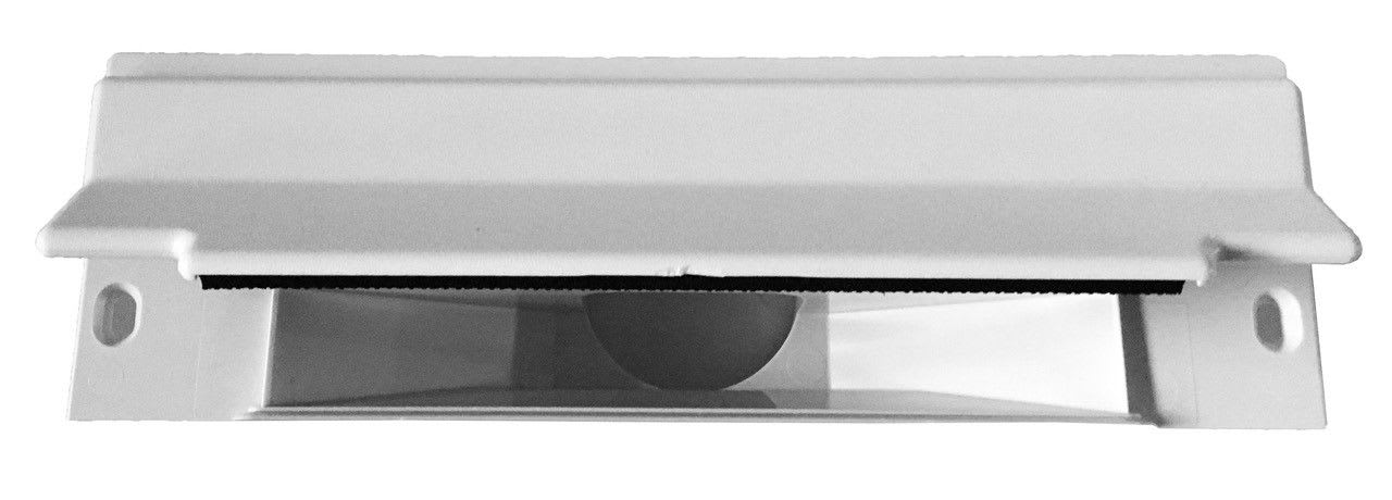 Trappe aspirante de cuisine blanche seule 23 X 7,2 cm . Intégrée dans la plinthe d'un meuble, vous balayez vers la trappe. Pratique pour les miettes de la cuisine ou les cheveux de la salle de bain.