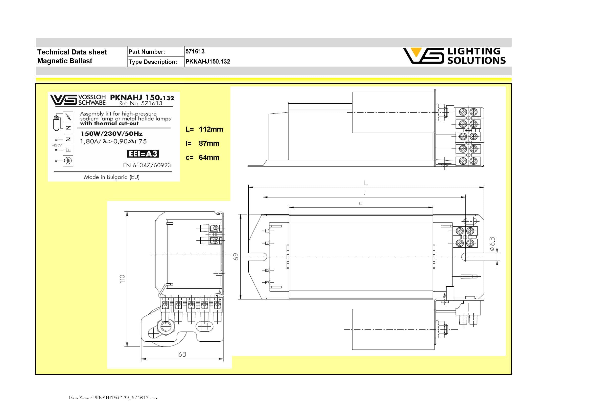 Vossloh Schwabe DEUTSCHLAND - Kit compact 150W SHP/HI PKNAHJ150.132 avec protection thermique - 571613