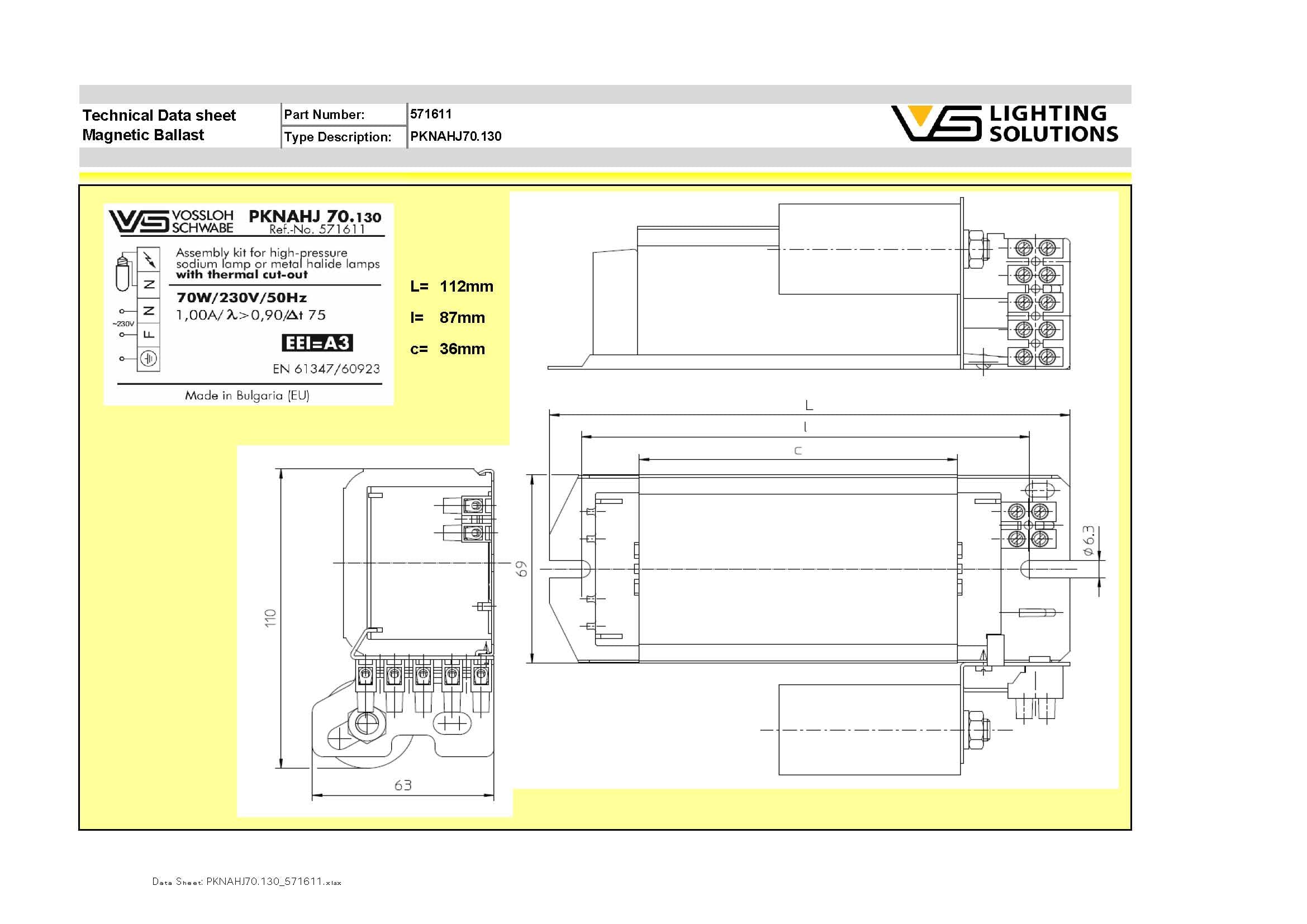 Vossloh Schwabe DEUTSCHLAND - Kit compact 70W SHP/HI PKNAHJ70.130 avec protection thermique - 571611