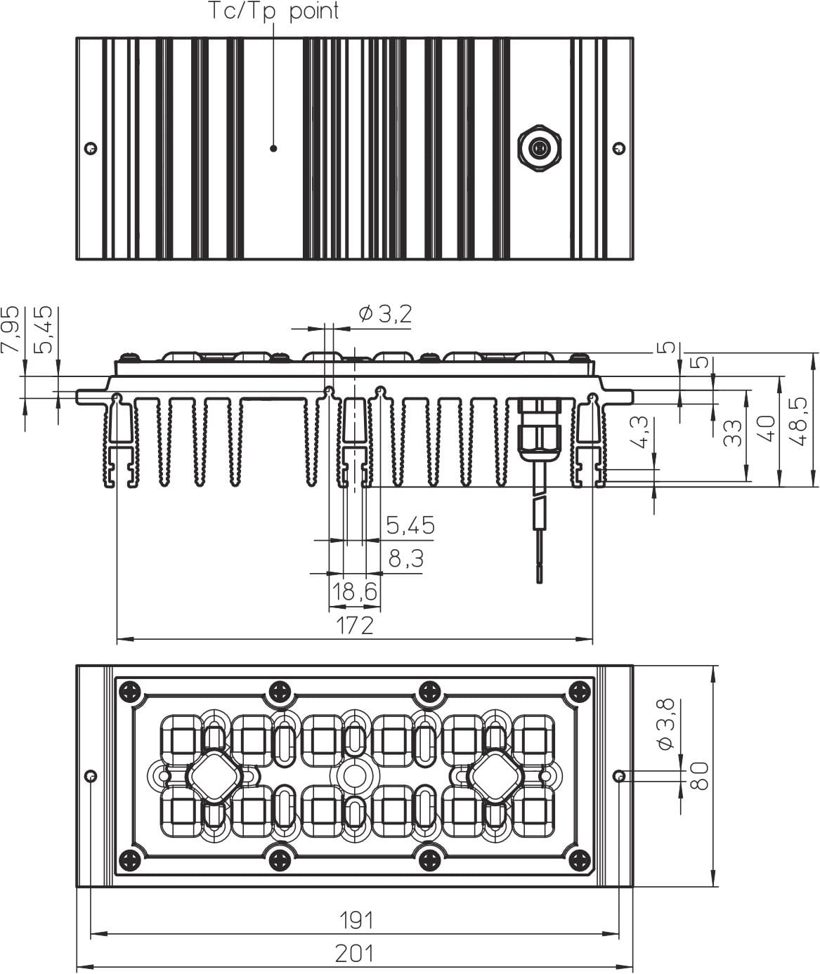 Module LED IP67 destiné à la maintenance ou modernisation d'un luminaire, en particulier les lanternes d'éclairage public.Ce module 2200K est équipé de 12 LEDs, permettant d'attendre un flux lumineux d'environ 5900lm (alimenté à 1400mA avec un driver séparé). Le module dispose d'une optique de type III (routier).ULOR < 1% (si installé horizontallement)