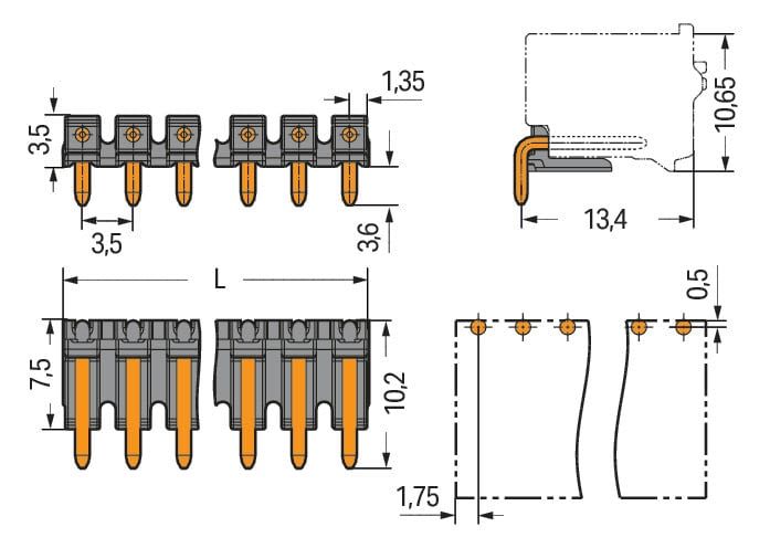 Wago Contact - Barrette de broches à souder Broche à souder Ø 1 mm Coudé, noir - 2091-1727