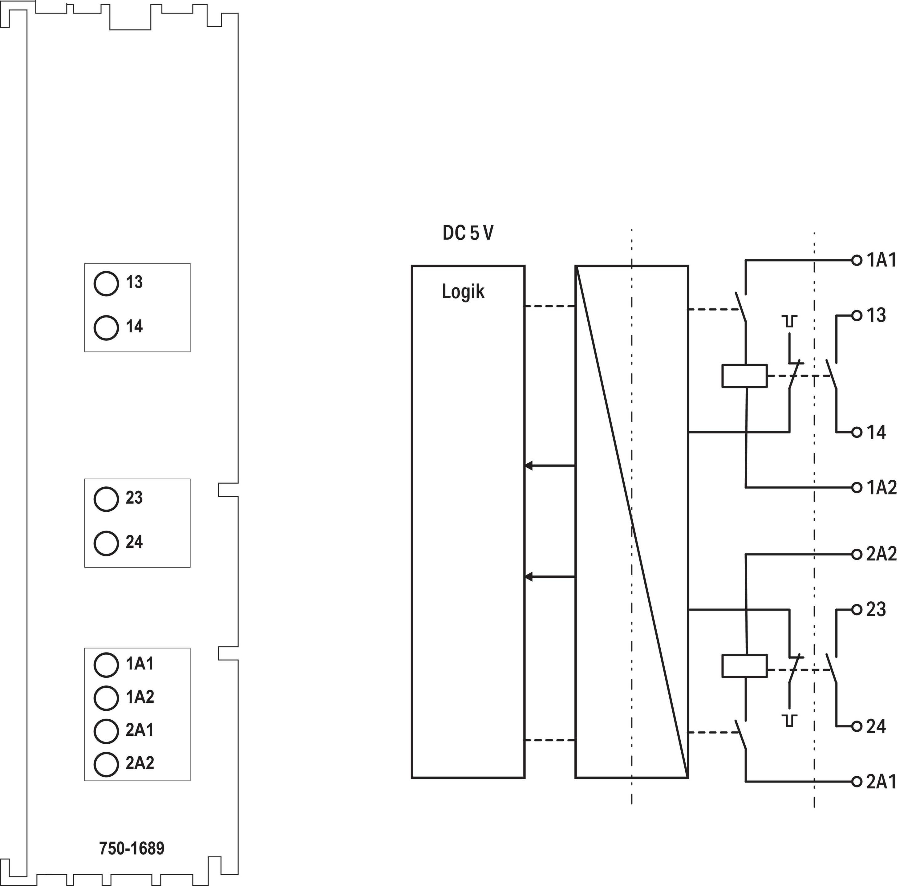 Wago Contact - Borne 2 sorties relais de sécurité 250V - 6A - 750-1689