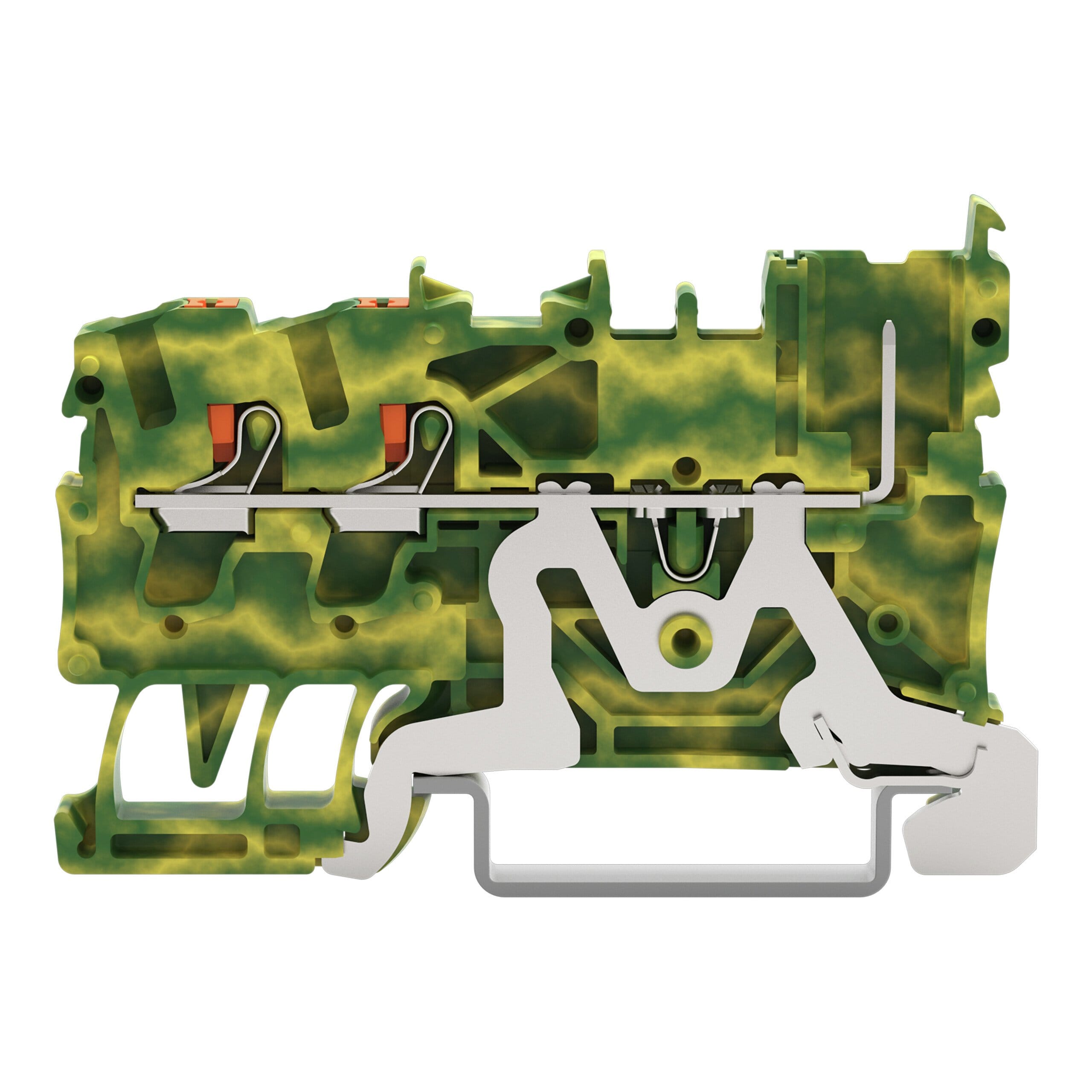 Borne à deux étages 2 conducteurs/2 Borne de protection pour 2 conducteu, vert-jaune
