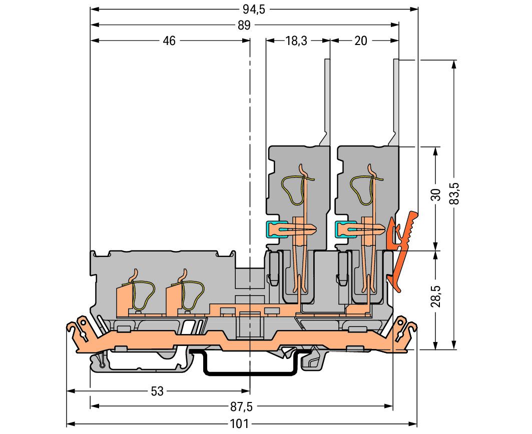 Wago Contact - Borne de base de tresse de blindage 2C/2 broches - 769-211