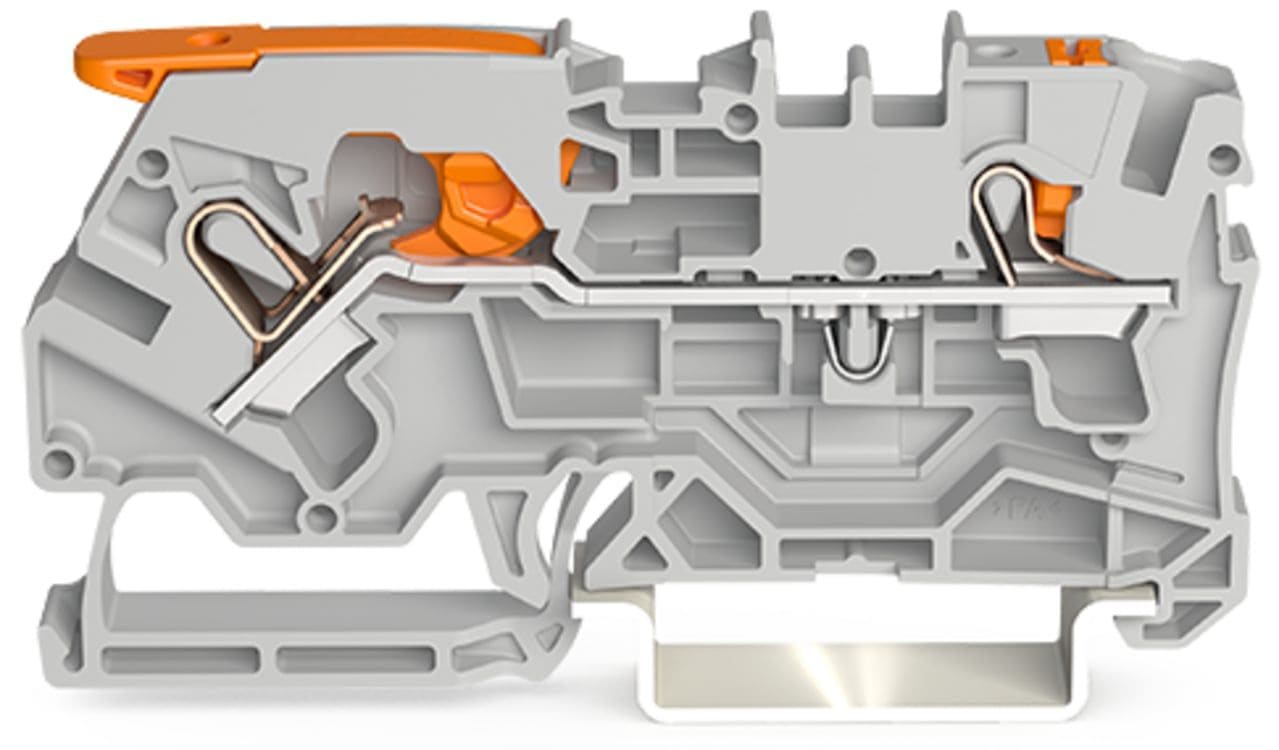 Borne de passage pour 2 conducteurs avec levier et poussoir 4mm², gris