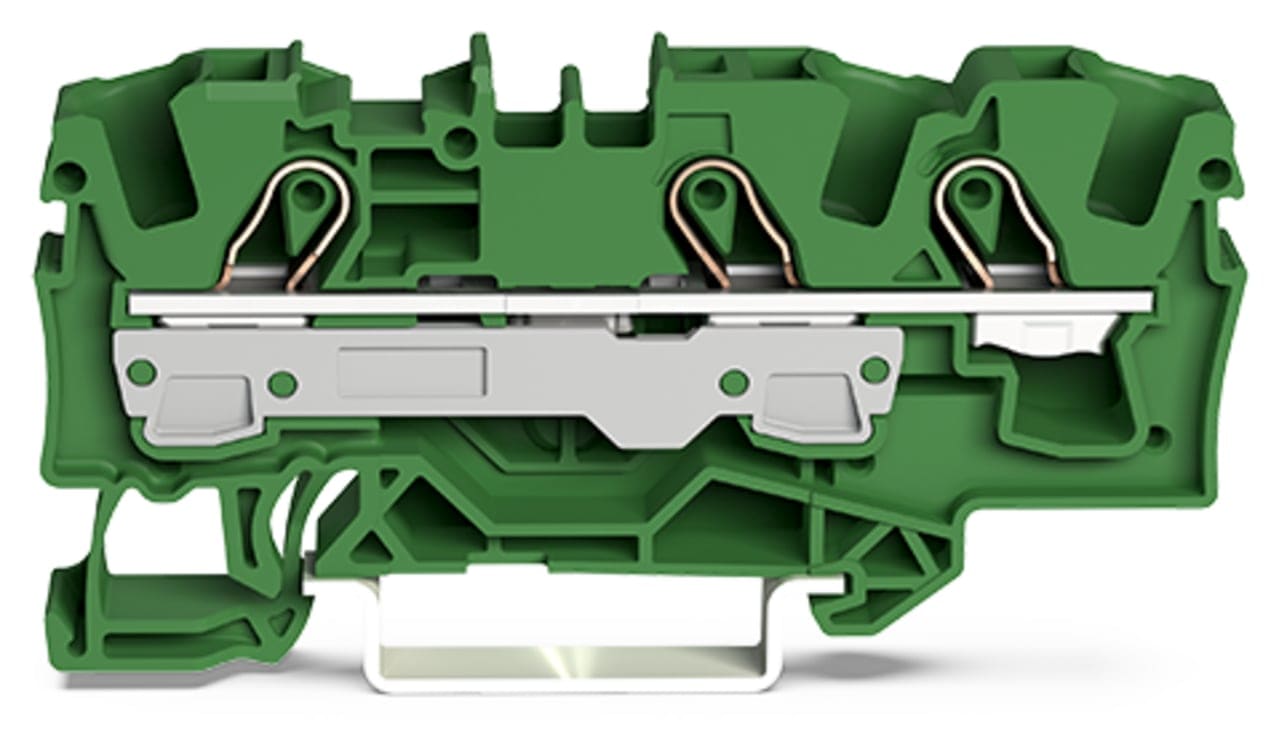Borne de passage pour 3 conducteurs 6mm², vert