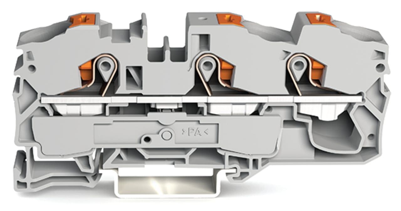 Wago Contact - Borne de passage pour 3 conducteurs avec poussoir 16mm², gris - 2216-1301
