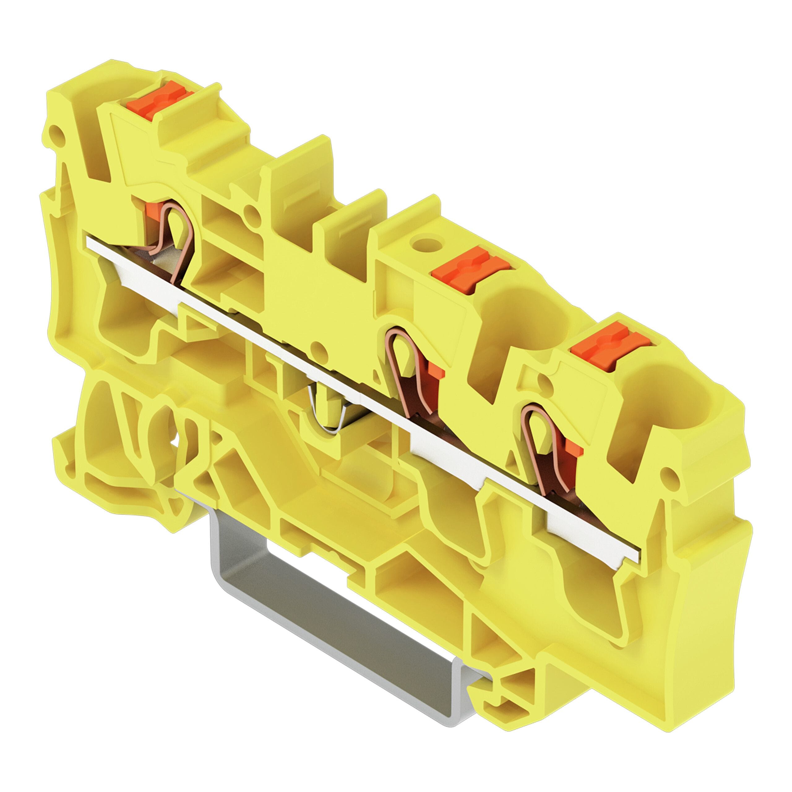 Borne de passage pour 3 conducteurs avec poussoir 4mm², jaune