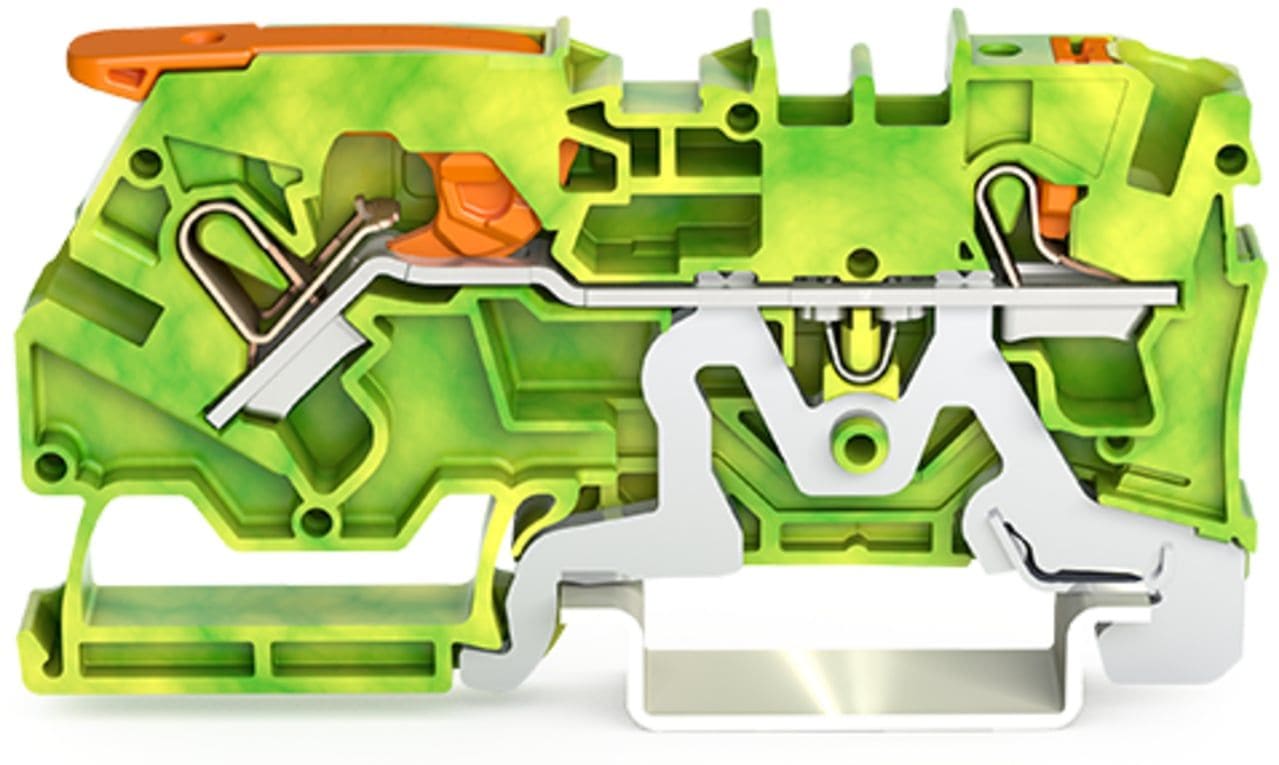 Borne de protection pour 2 conducteu avec levier et poussoir 4mm², vert-jaune