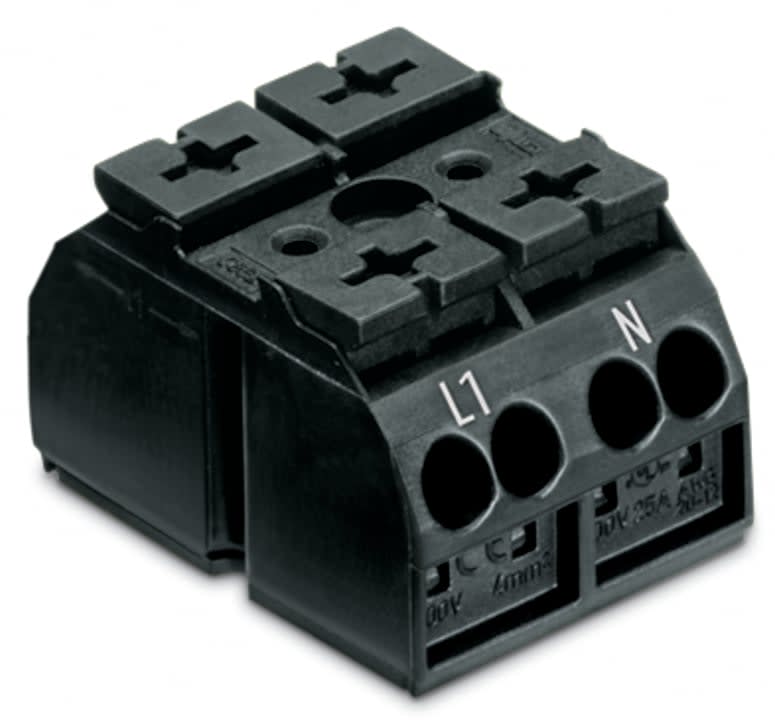 Wago Contact - Borne de raccordement 2 pôles Noir (Marquage L1-N, fixation par vis dessus) - 862-1552