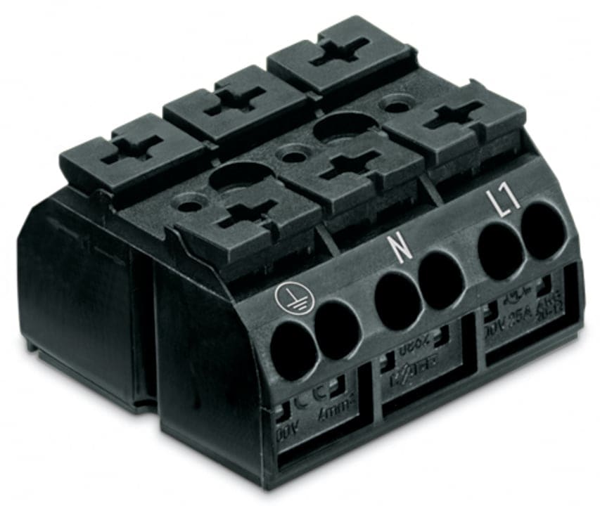 Wago Contact - Borne de raccordement avec terre 3 pôles Noir (Marquage PE-N-L1, 2 pieds de fixa - 862-9593