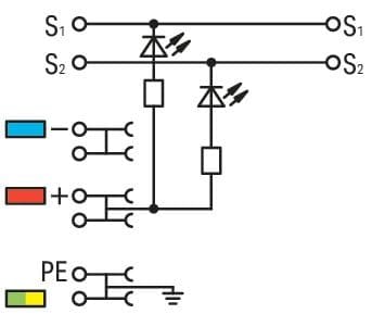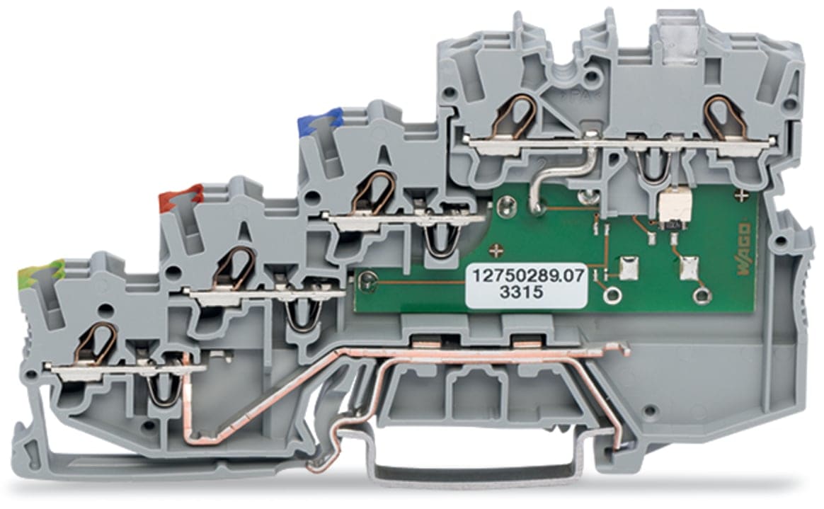 Wago Contact - Borne pour capteurs NPN, 4 conducteurs- LED - PE racc Rail - 2000-5417/1101-951