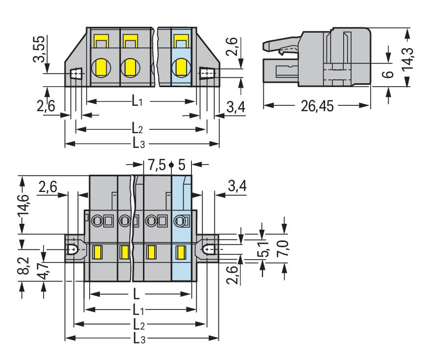 Wago Contact - Connecteur femelle avec brides de fixation - 231-216/031-000