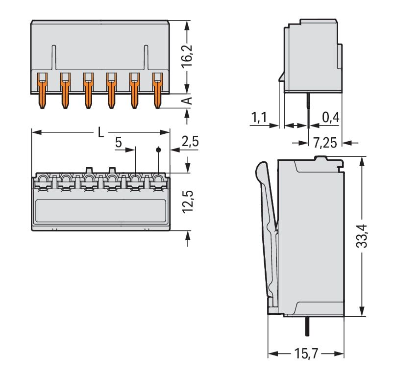 Wago Contact - Connecteur femelle THT 0.4 x 1.3 mm solder pin Droit, gris clair - 2092-1304/200-000