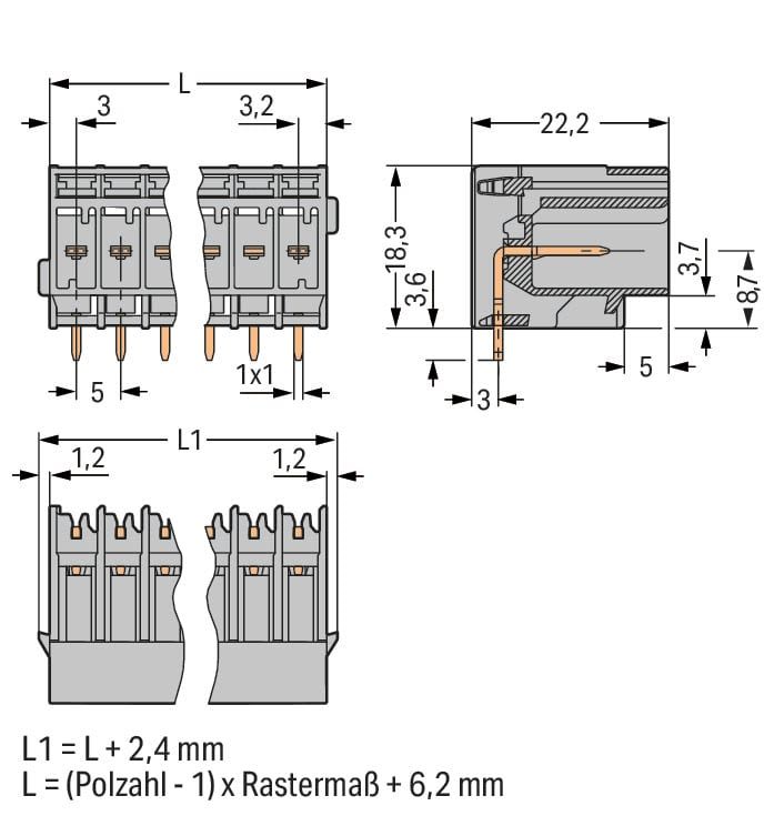 Wago Contact - Connecteur mâle THT 1.0 x 1.0 mm solder pin Coudé, gris - 769-675