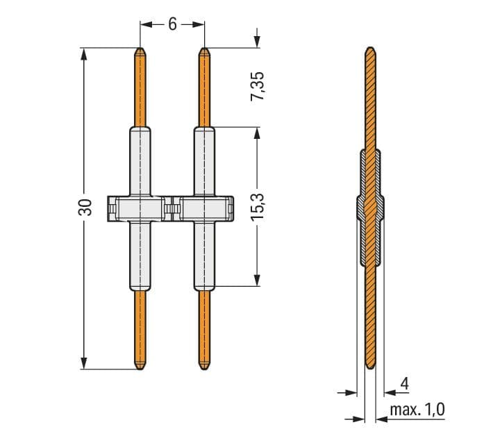 Élément de raccordement pas 6mm 1 pôle, blanc Longueur 30mm