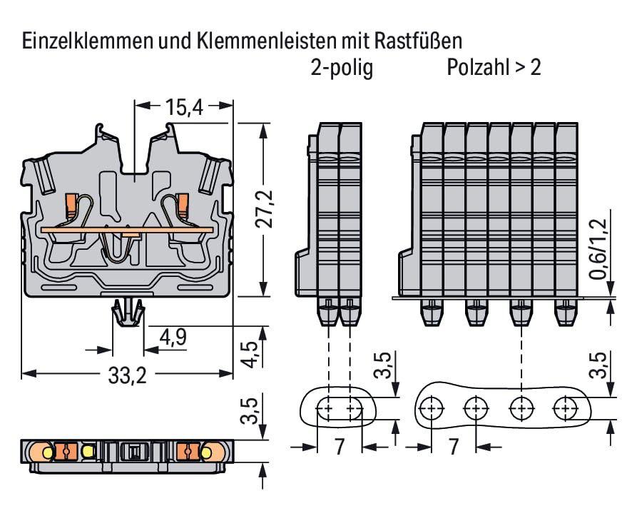 Wago Contact - Mini-borne de passage pour 2 conduct - 2250-315